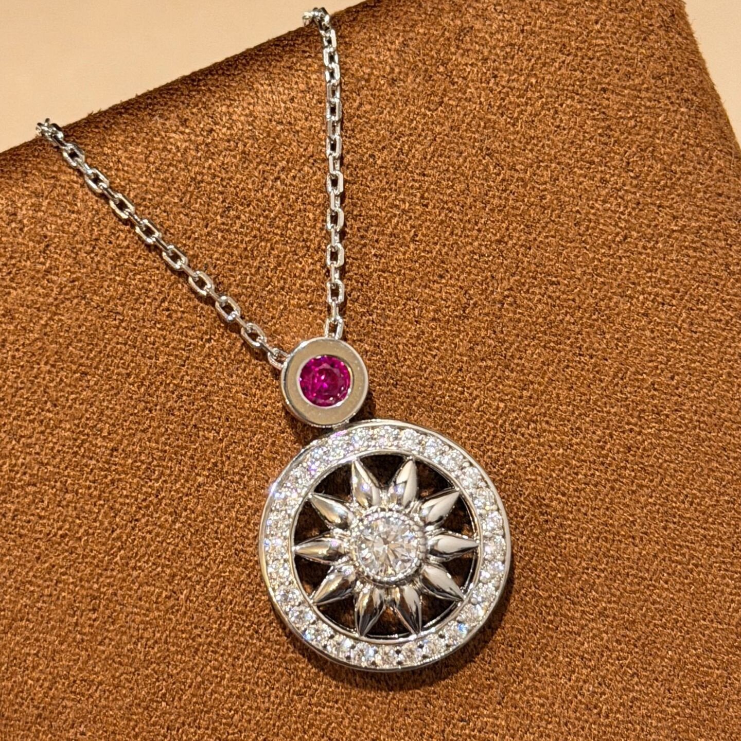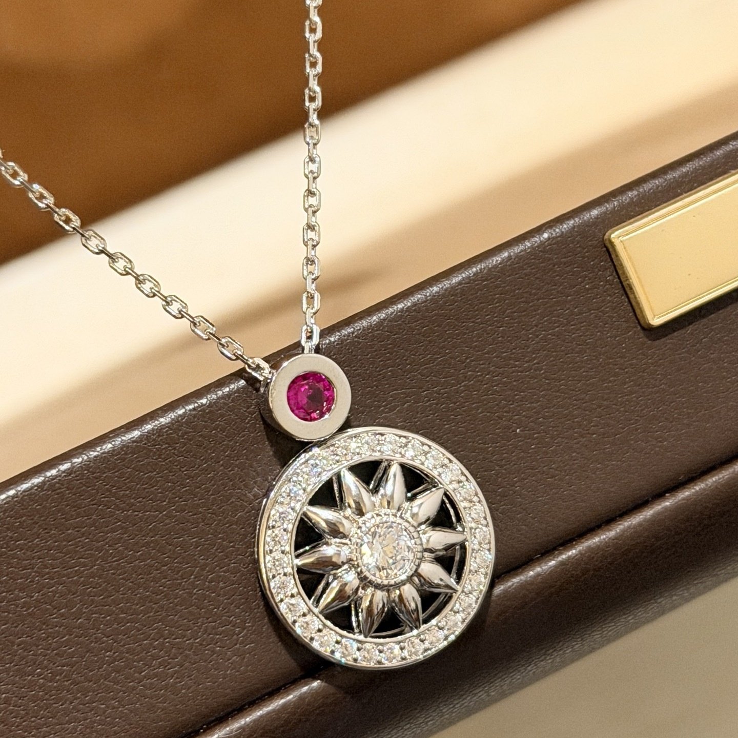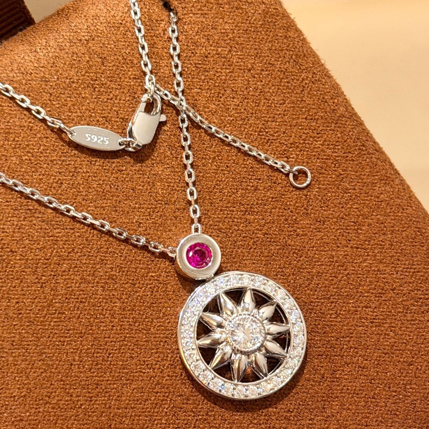 设计师s925纯银 粉钻罗盘项链圆圈轻奢精致感设计款复古八芒星