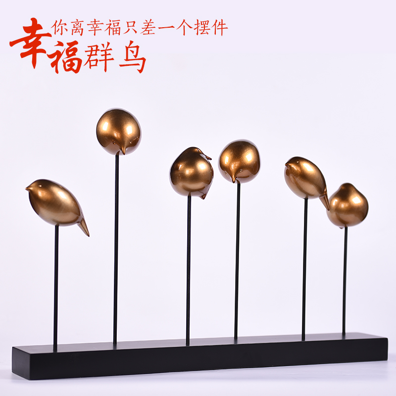 小鸟装饰电视柜摆件现代工艺品创意客厅摆设家居饰品一家三口