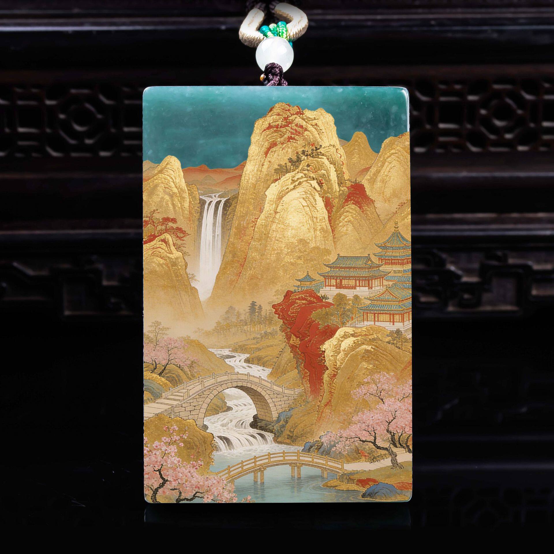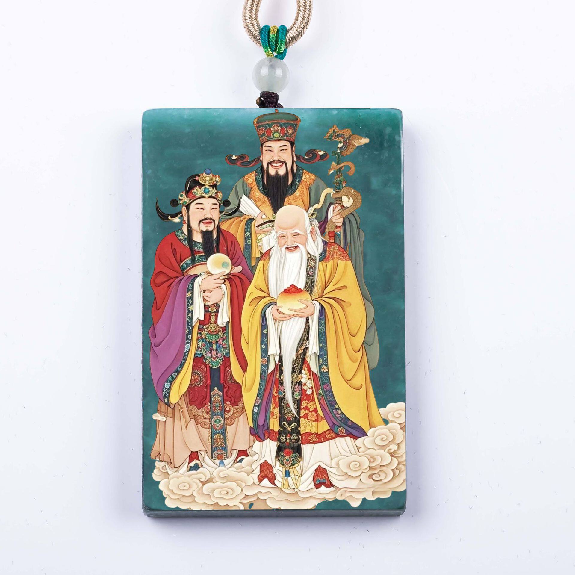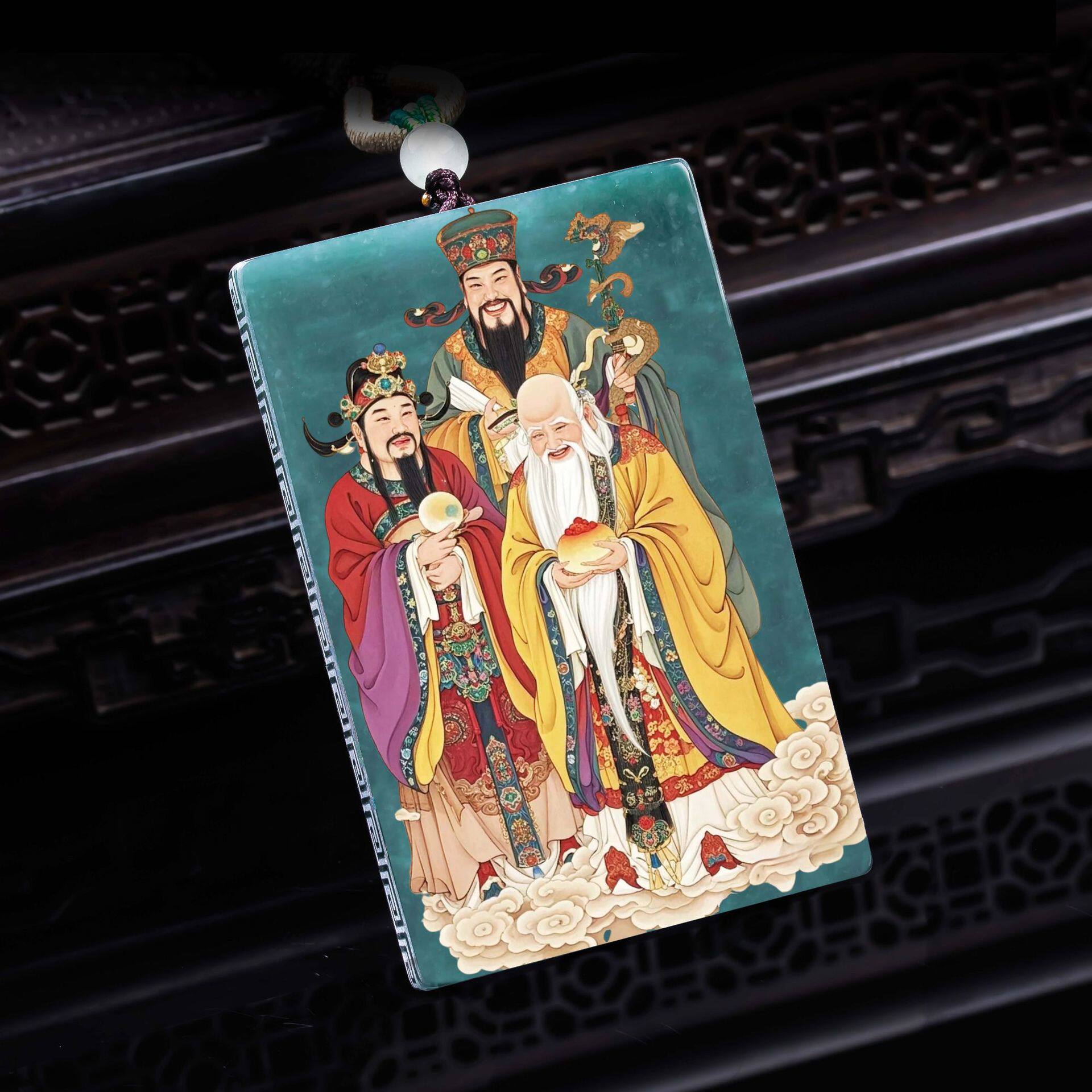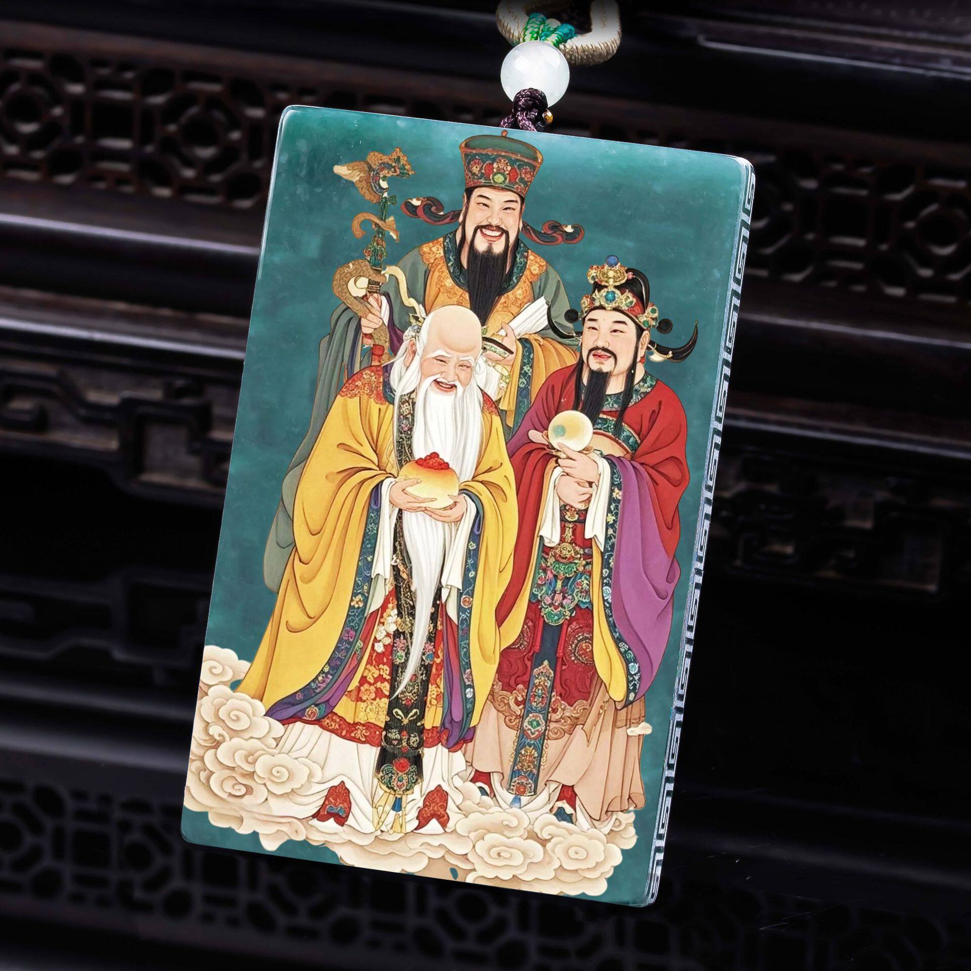 天然A货翡翠福禄寿双面精工超清喷绘高冰种老玉石吊坠挂件玉美