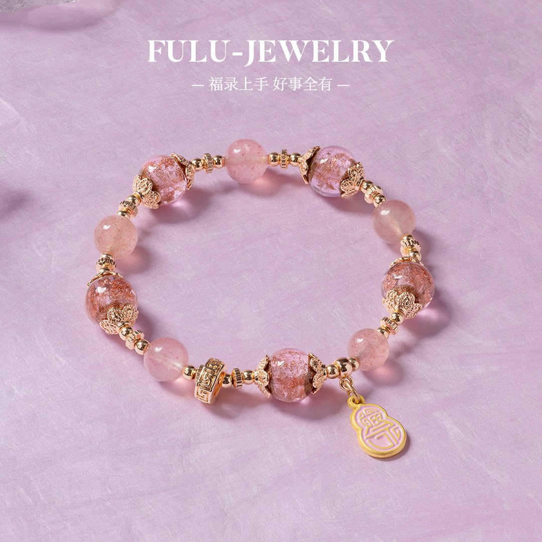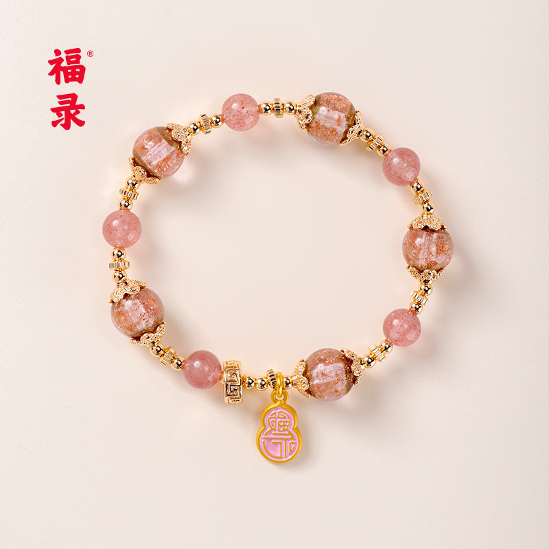 福录晶灵愈界系列-女神附体草莓晶金沙琉璃手串转运手链生日礼物