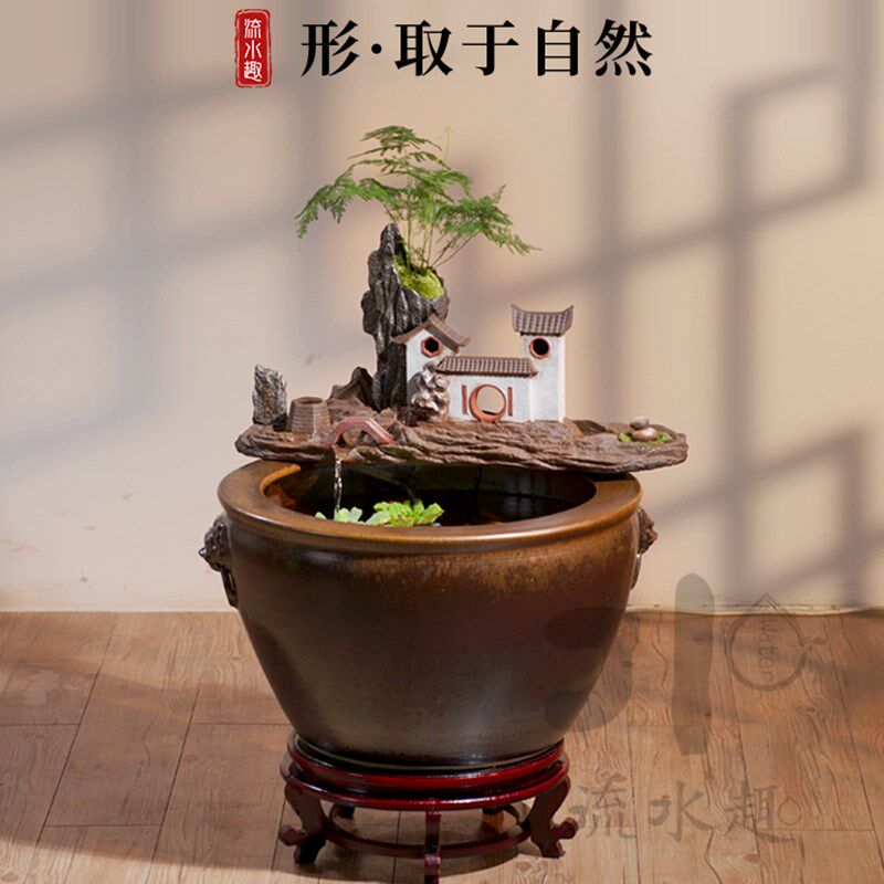 流水趣 陶瓷创意流水器造水景配件假山石槽鱼缸循环摆件过滤装饰