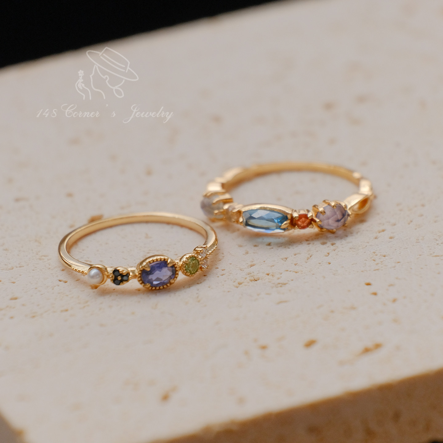 繁花绮梦 日系精致气质百搭复古天然宝石堇青石蓝托帕925纯银戒指