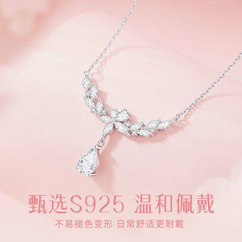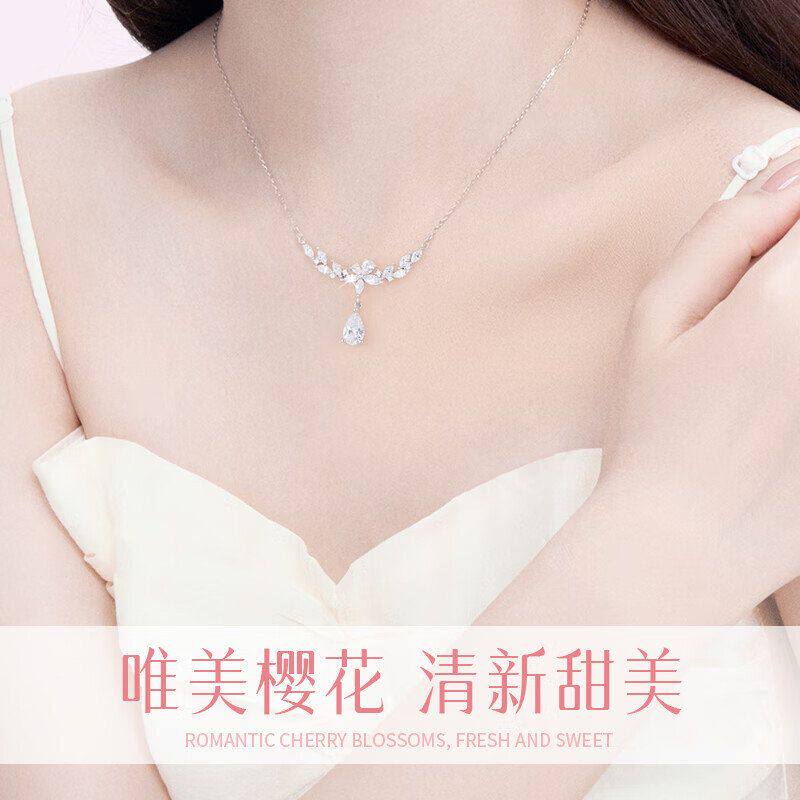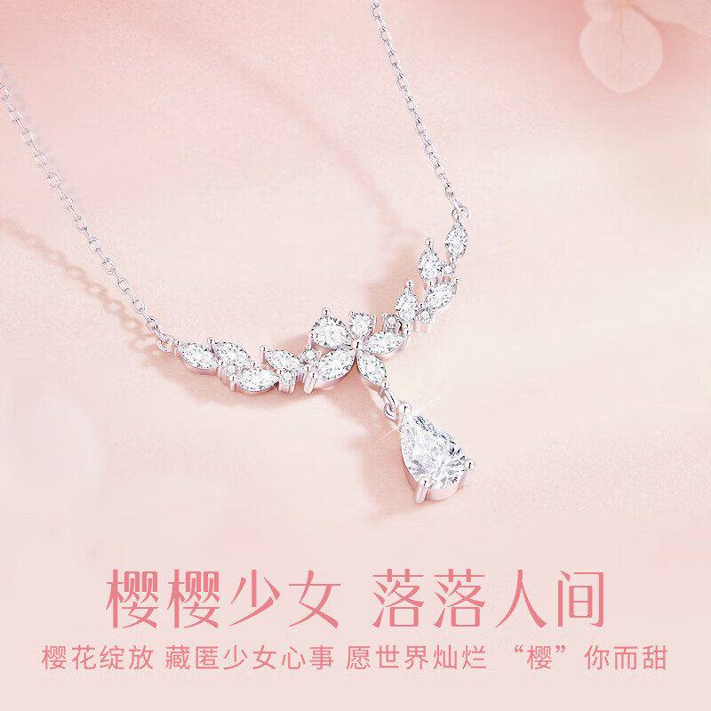 樱花绮梦S925银樱花项链女生轻奢水滴锆石吊坠高级锁骨链节日礼物