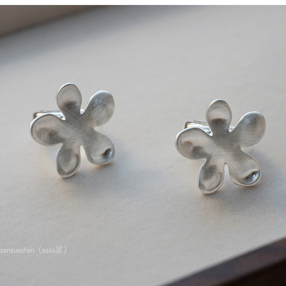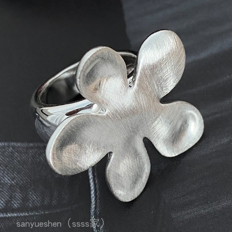 日韩重工拉丝银色设计师款大立体花朵ins风复古纹路戒指女指环