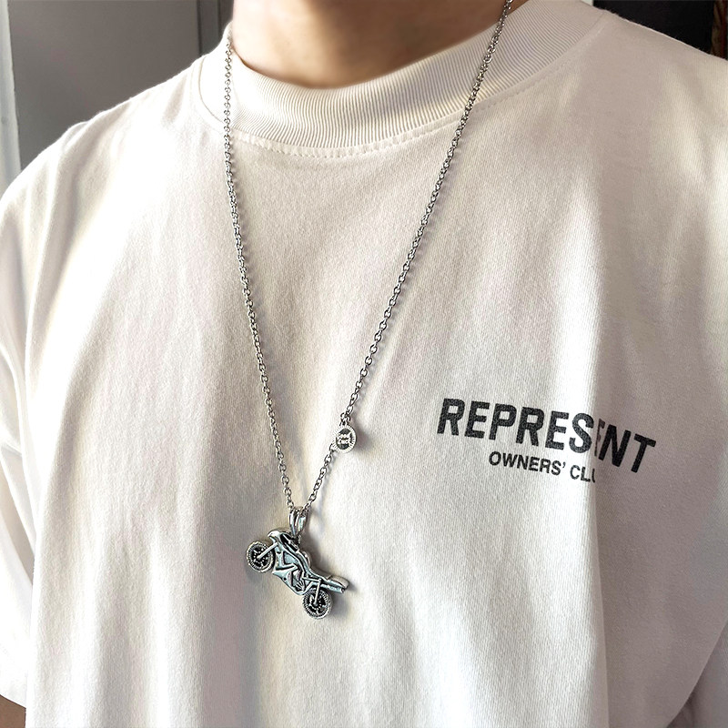 原创小众设计高街ins摩托吊坠钛钢项链男百搭中性嘻哈潮女卫衣链