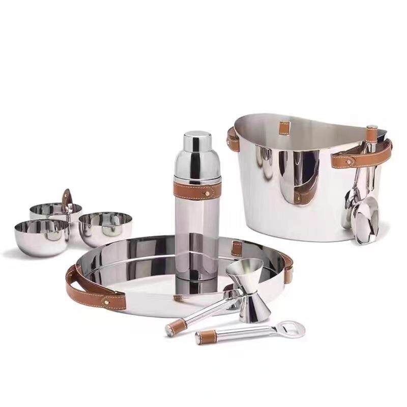 欧式不锈钢家用酒具套装轻奢调酒器冰桶零食碗托盘软装搭配套装