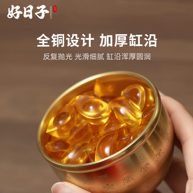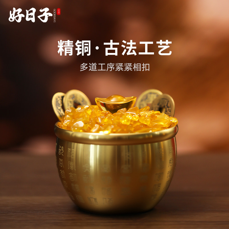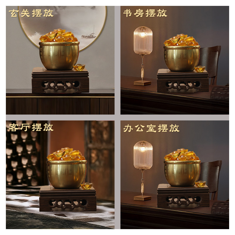 玄关百福缸招财聚财摆件纯黄铜八方来财百福缸招财进宝生财聚宝盆