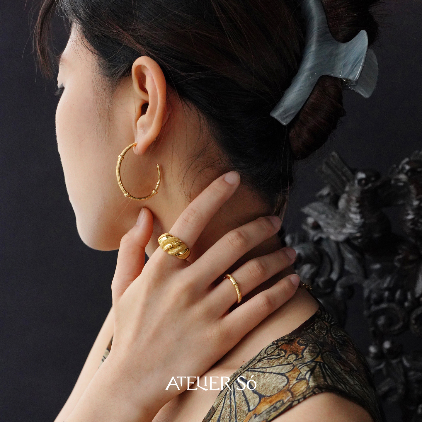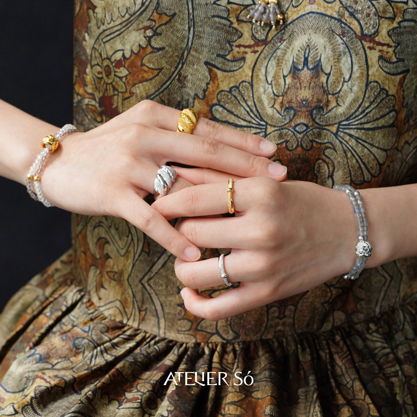 ATELIERSO 可颂钉砂戒指 纯银磨砂纹理原创设计小众气质宽戒默叙