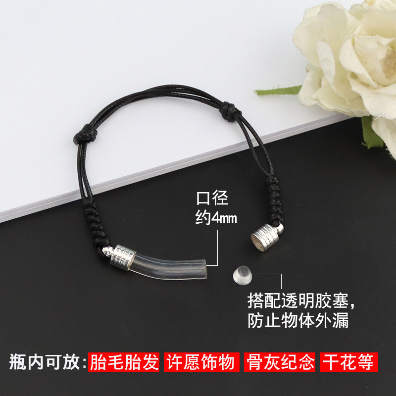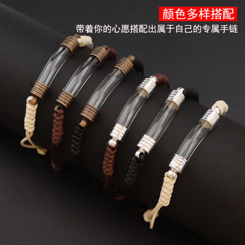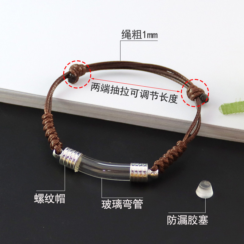 玻璃弯管蜡绳手链放米珠胎毛可调节手链DIY螺纹帽米雕瓶饰品配件