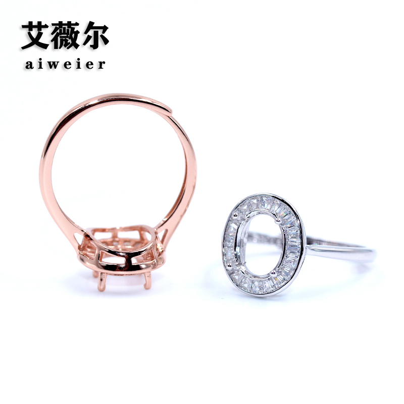 精工S925纯银戒指空托轻奢戒托代宝石镶嵌4*6-5*7-6*8-7*9-8*10