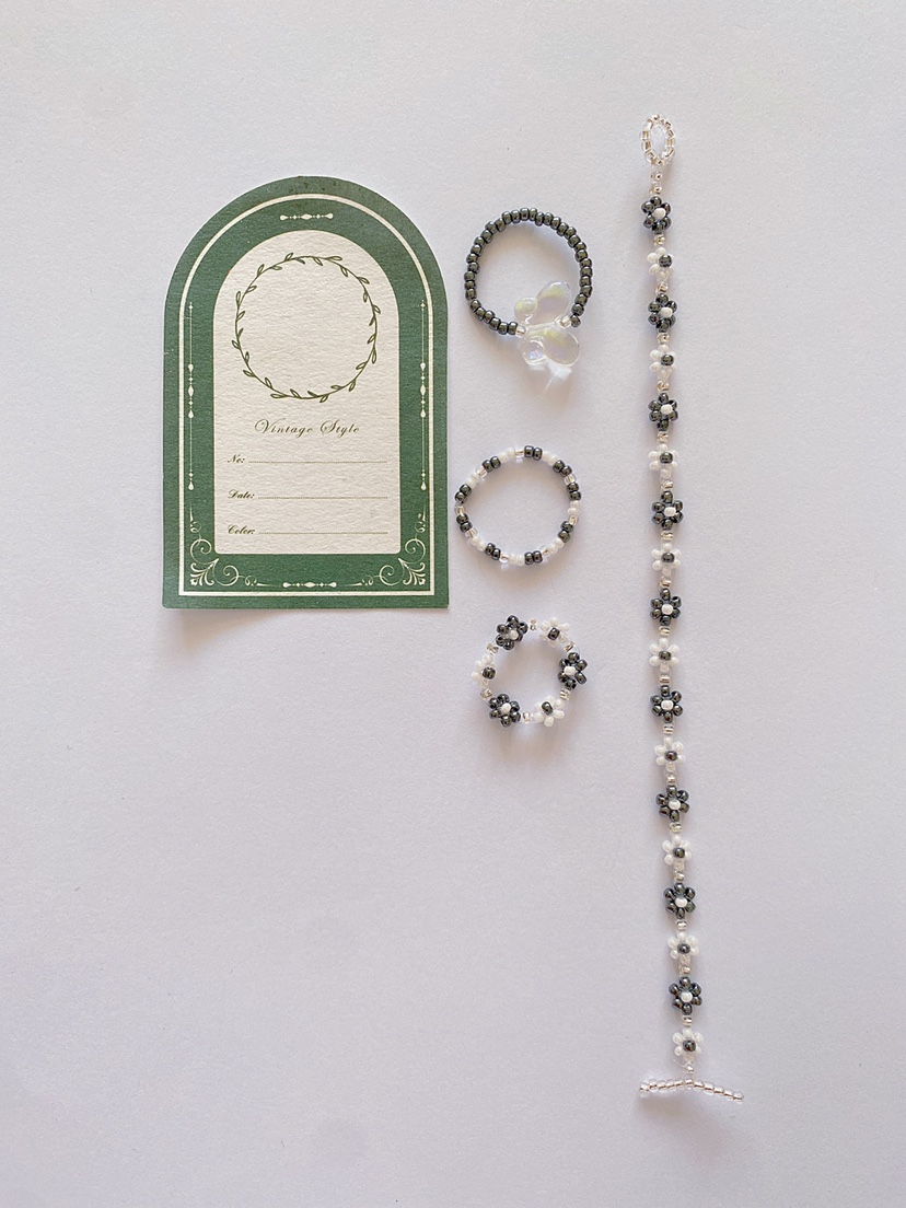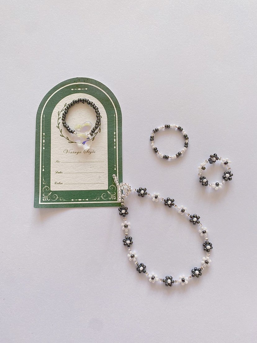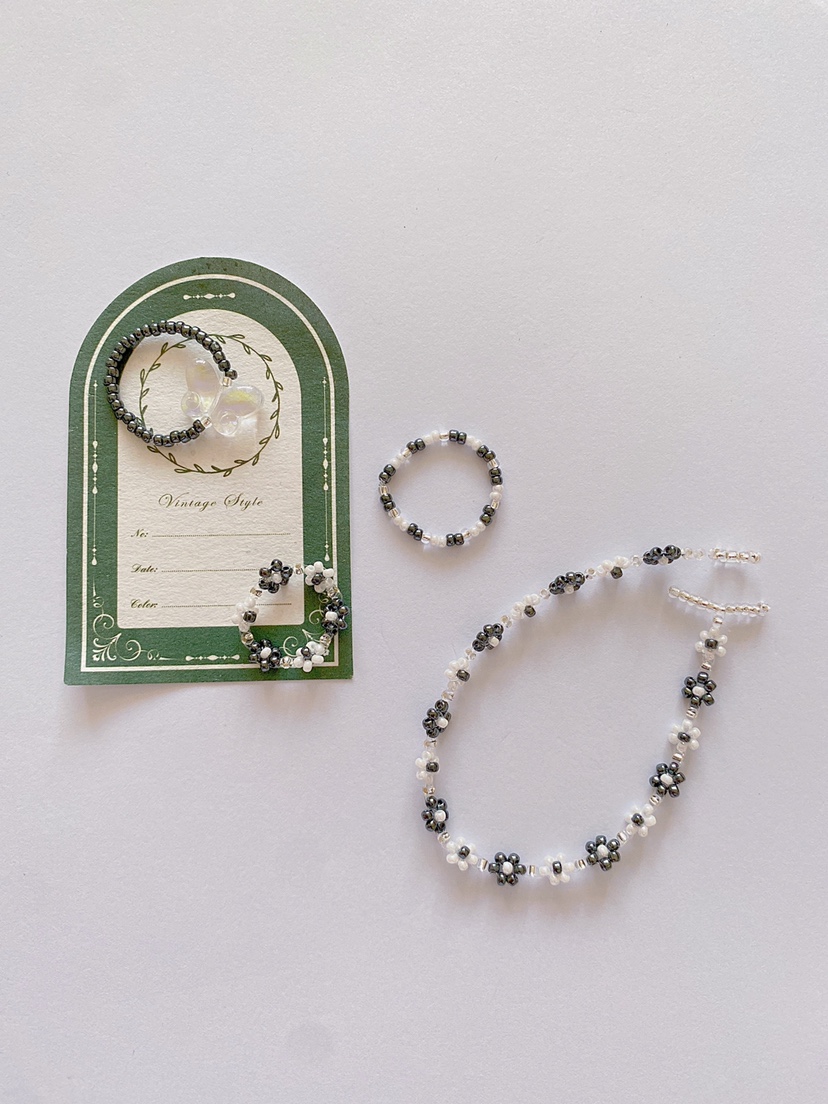 初秋薄暮 秋冬新款黑白米珠手工自制diy小花手链闺蜜礼物材料包
