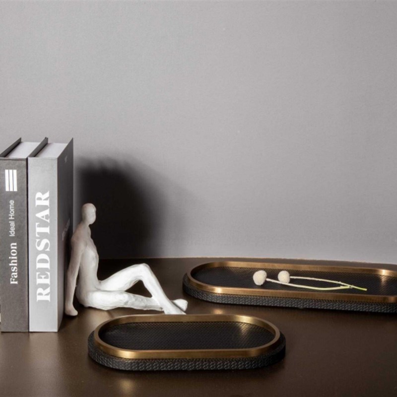 简约现代拉丝编织皮质托盘客厅厨房样板间收纳摆盘饰品摆件