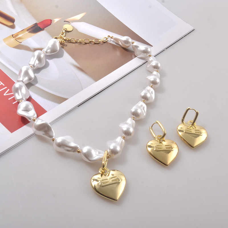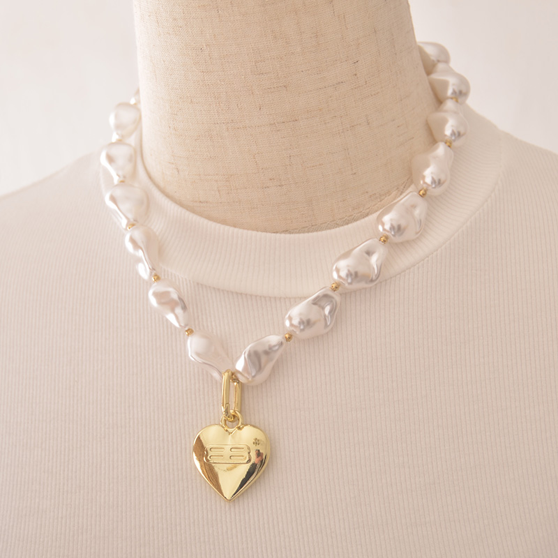 欧美叶莎陈太太同款珍珠爱心吊坠项链女巴洛克字母桃心小众锁骨链