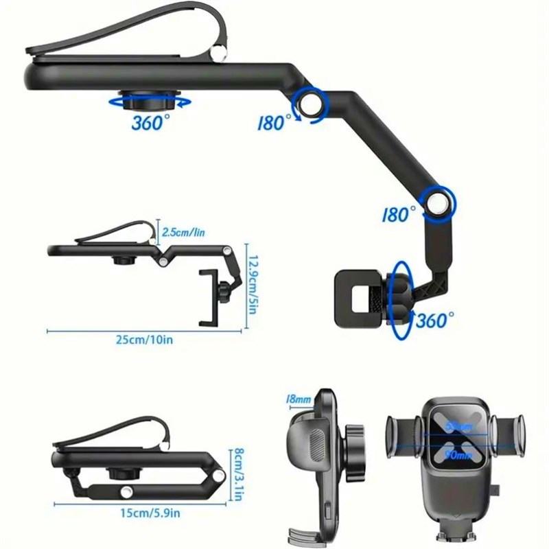 汽车遮阳板车载支架新款旋转电动车后视镜O导航夹子固定支撑架