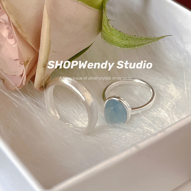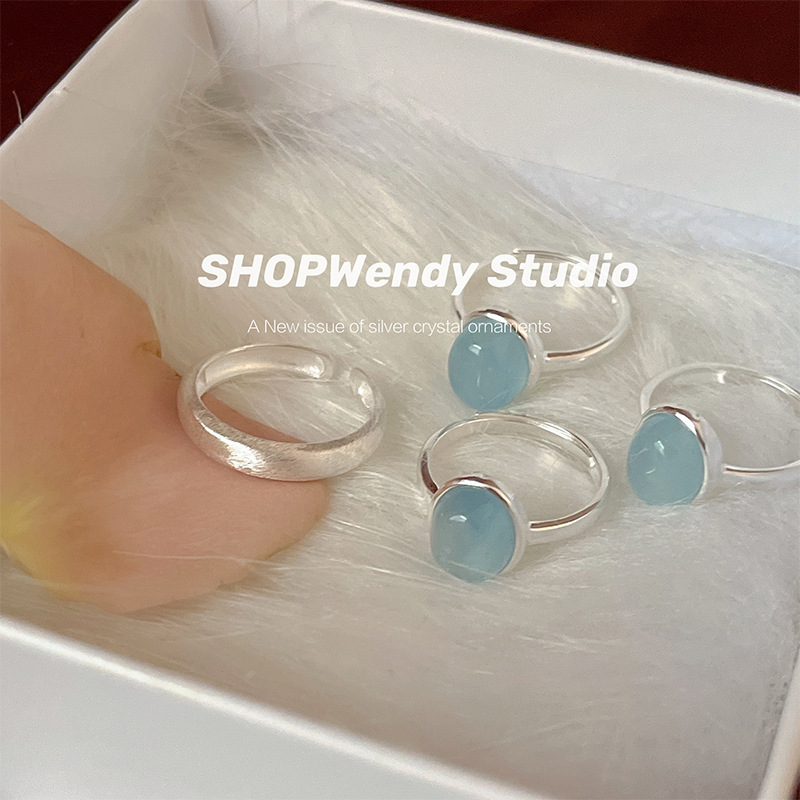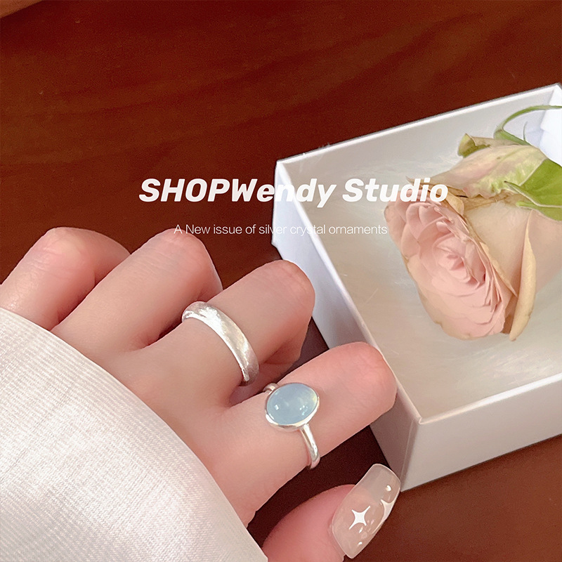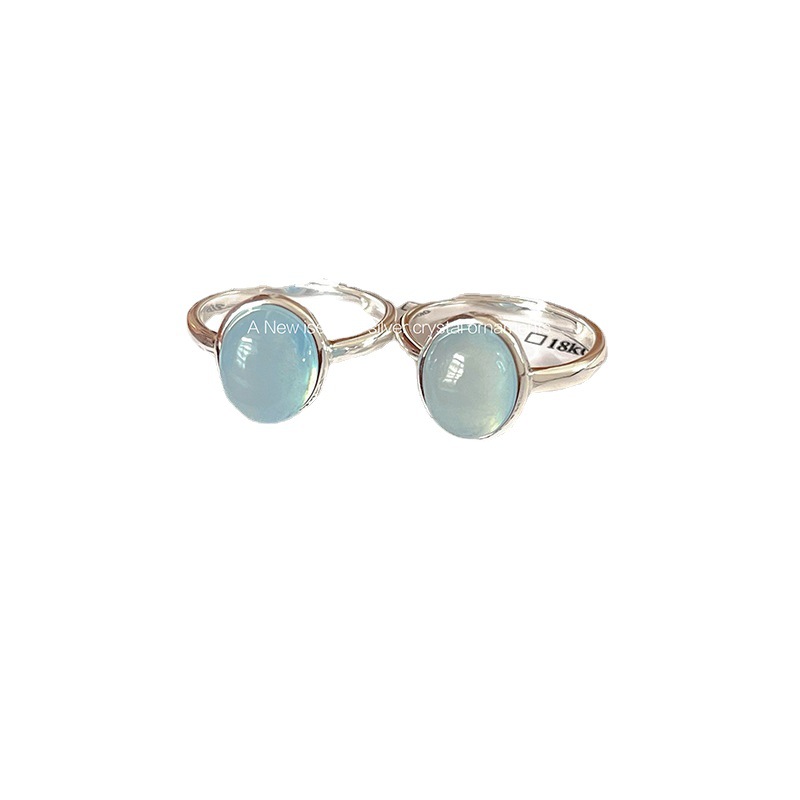 一恋天蓝色椭圆锆石戒指女高级感轻奢气质素圈开口指环食指