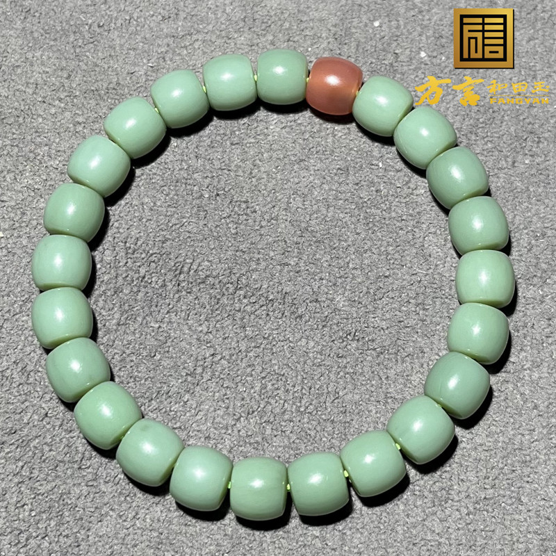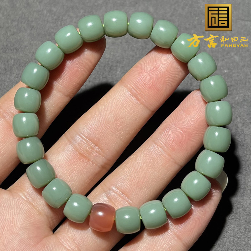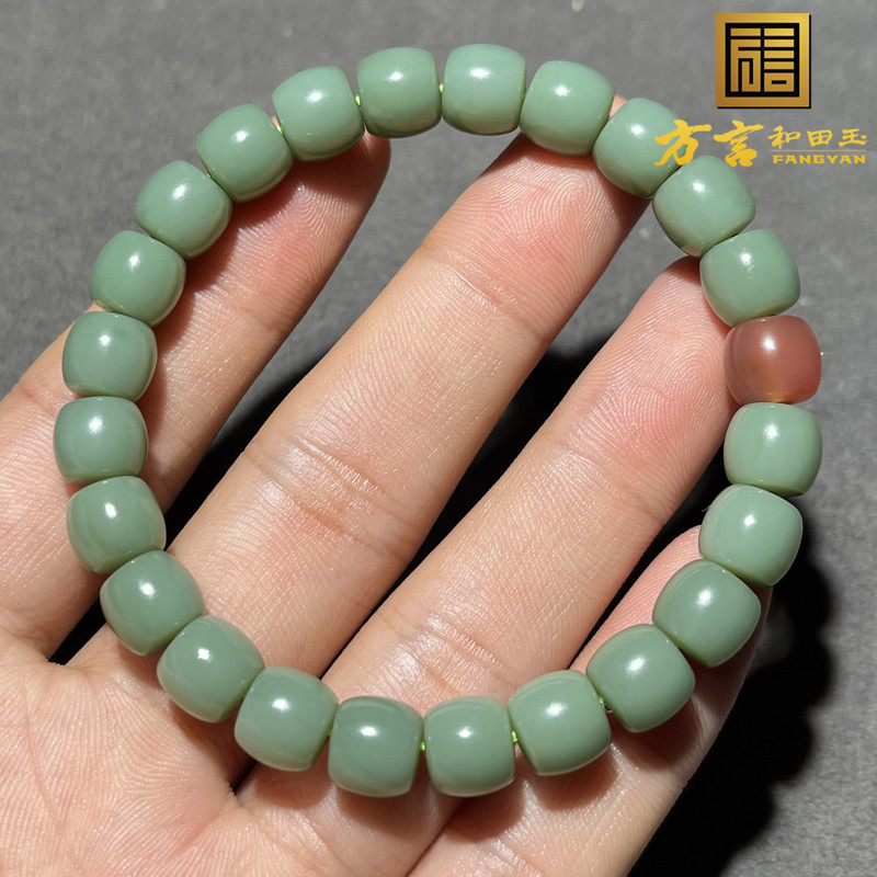 罕见方言和田玉俄罗斯油润细腻碧玉夹层料瓷蓝色8mm精美手串S
