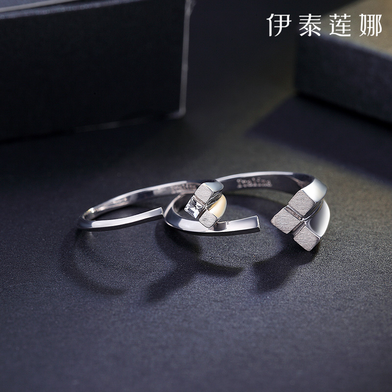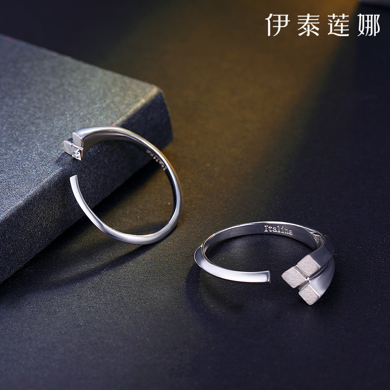 【任选】伊泰莲娜S925银戒指印情侣对戒可调节开口戒男女指环礼物