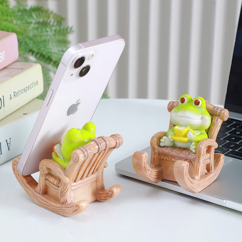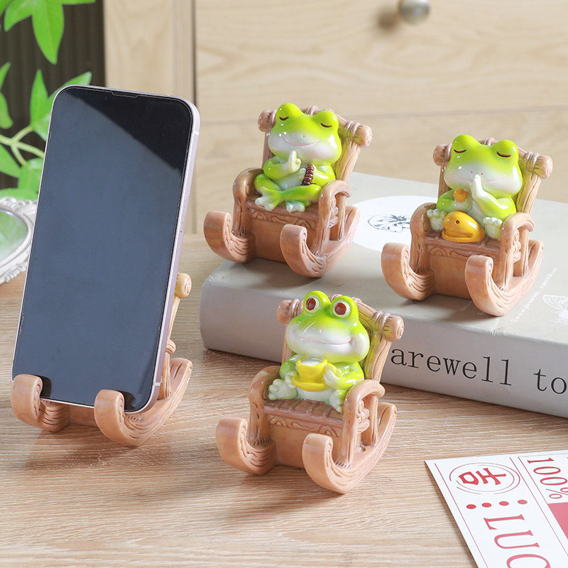 可爱青蛙手机支架小摆件情绪稳定女生平板解压办公工位桌面装饰品