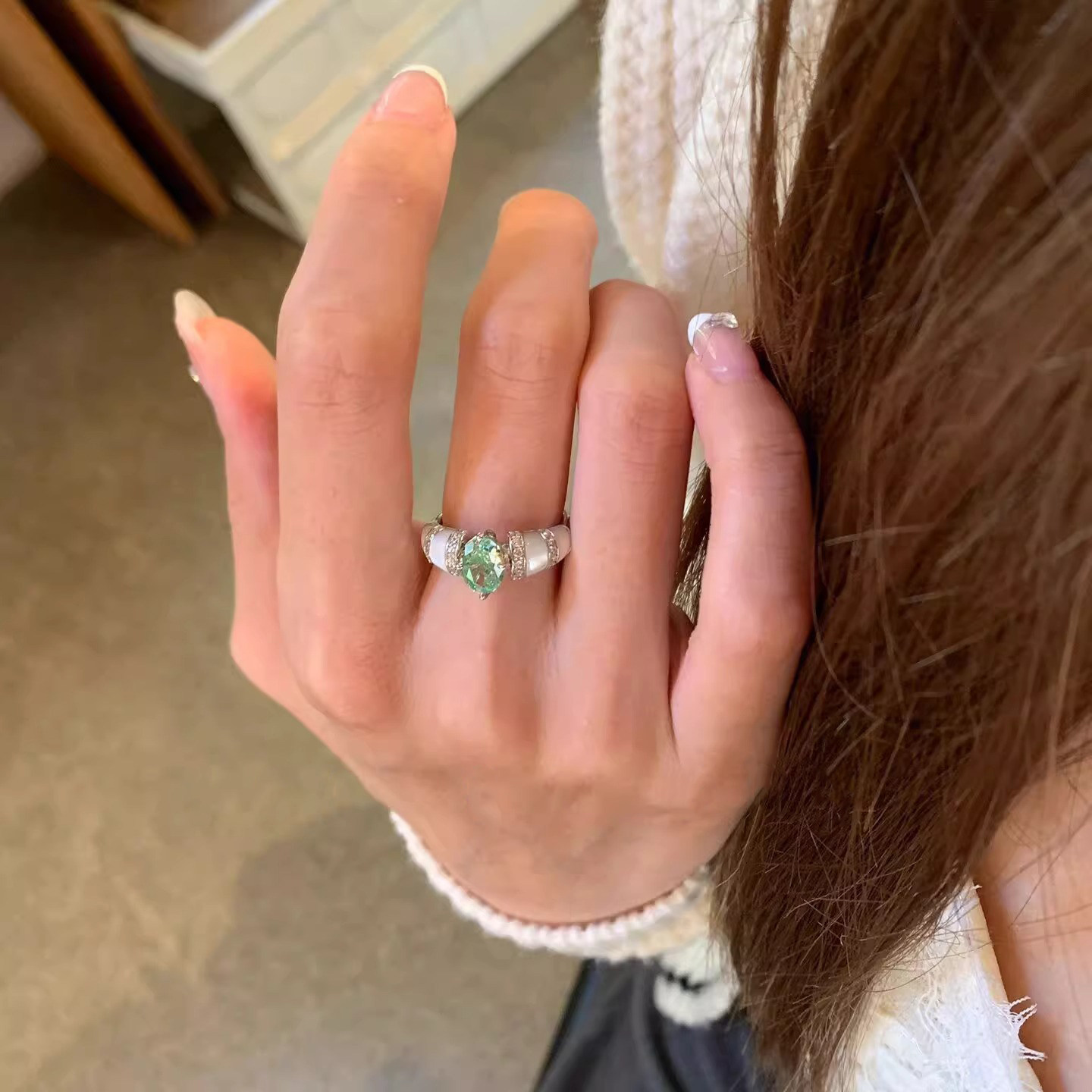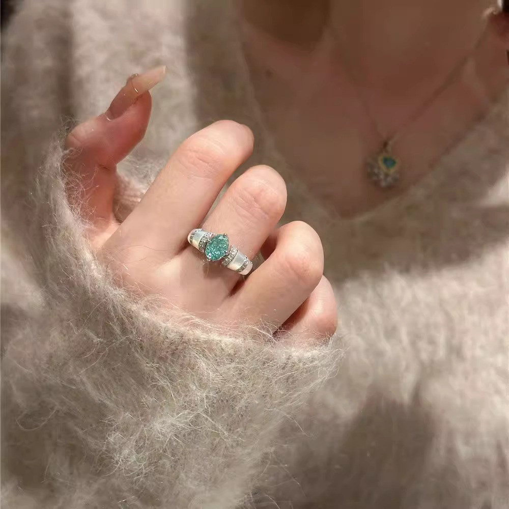 中古vintage蓝色锆石戒指女轻奢高级感小众ins风开口戒可调节戒指