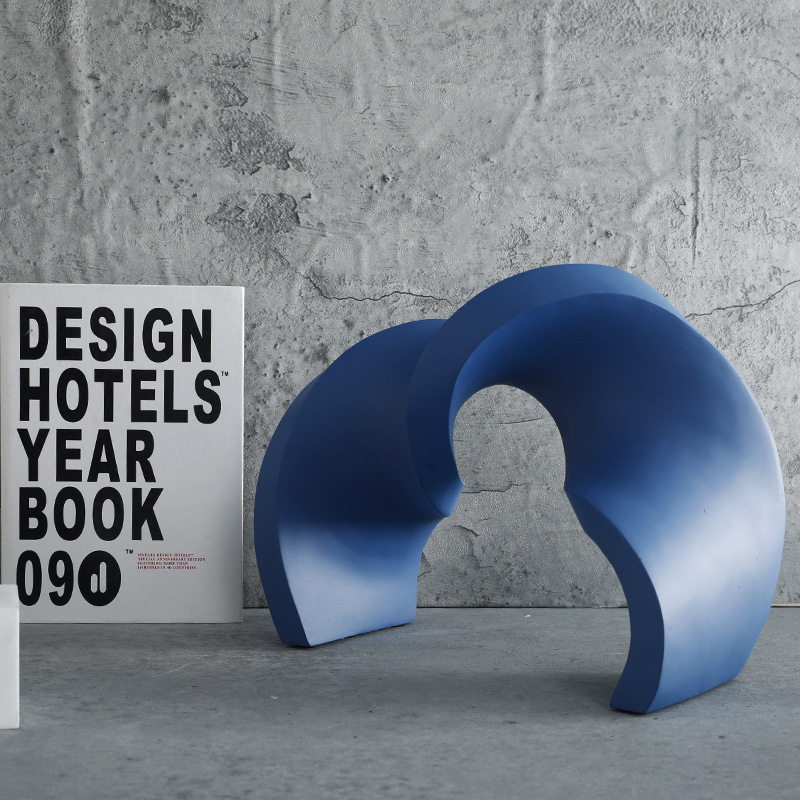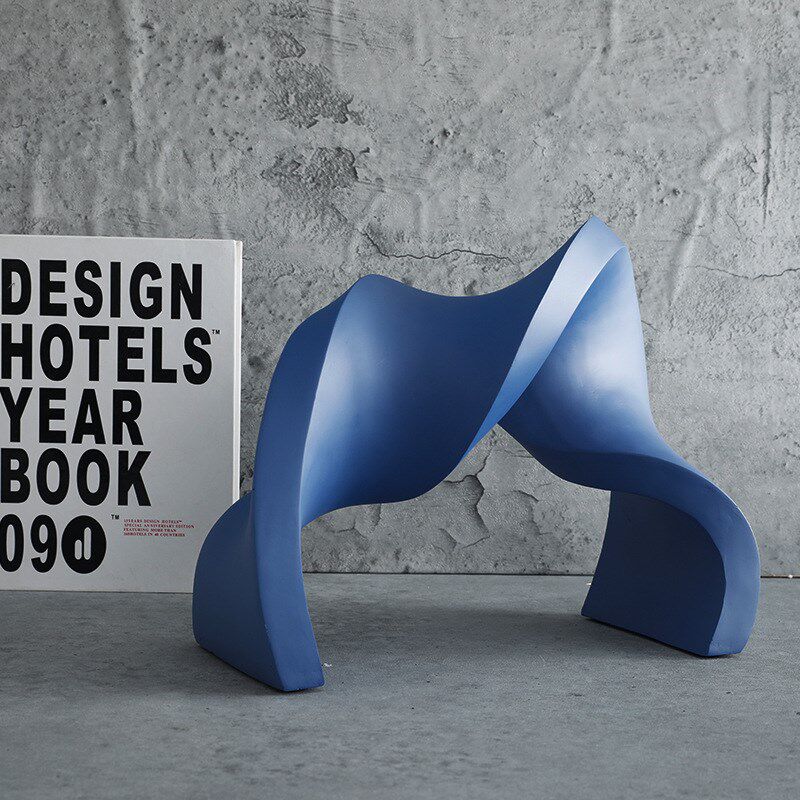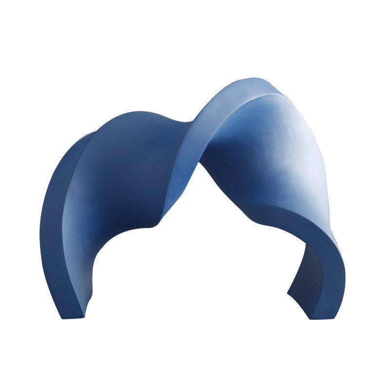 简约现代轻奢蓝色磨砂树脂摆件客B厅书房创意丝带样板房桌面装饰