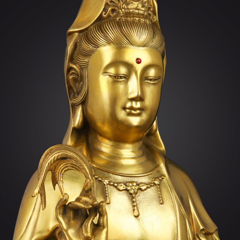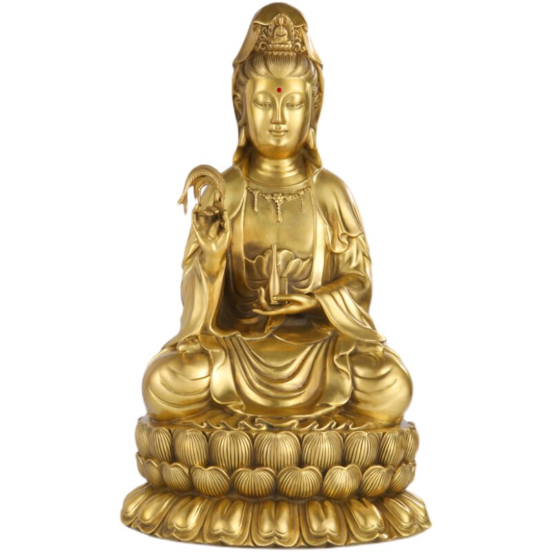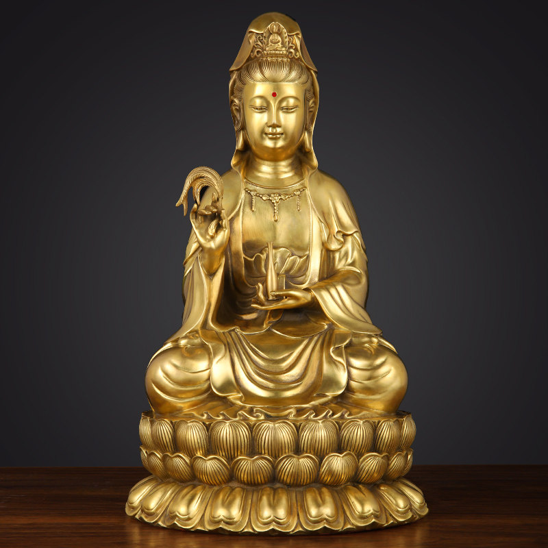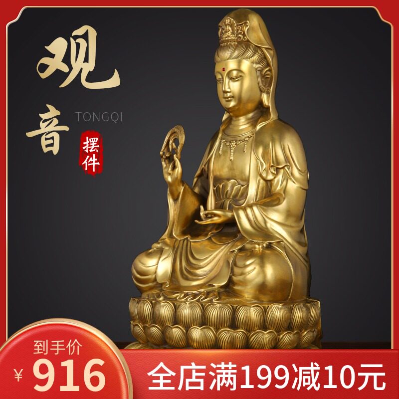新品纯黄铜观音j像供奉家用室内客厅南海坐莲铜观世音菩萨套装摆