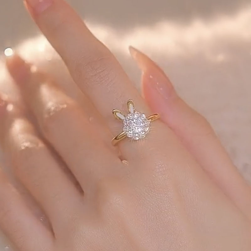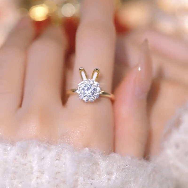 设计感镶钻旋转兔子戒指2022年新款潮网红气质高级感指环兔年饰品