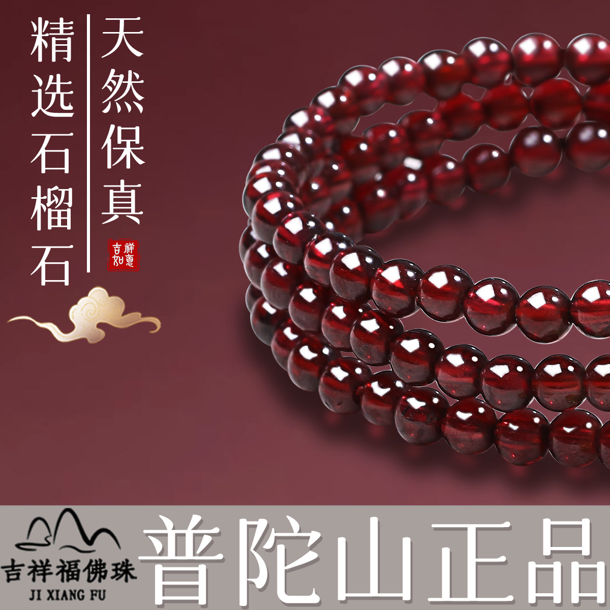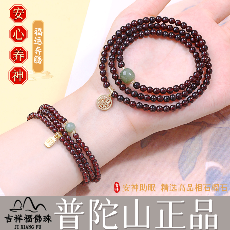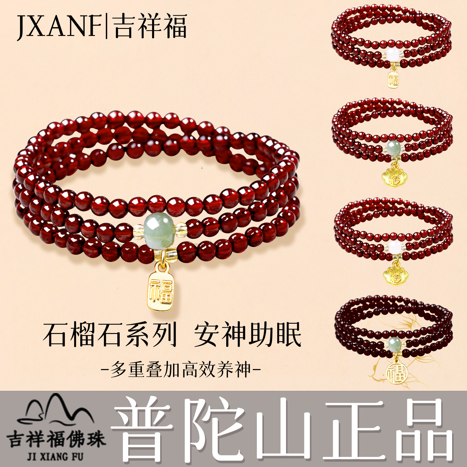 普陀山文创集正品天然三圈石榴石手串和田玉水晶手链女款2025新款