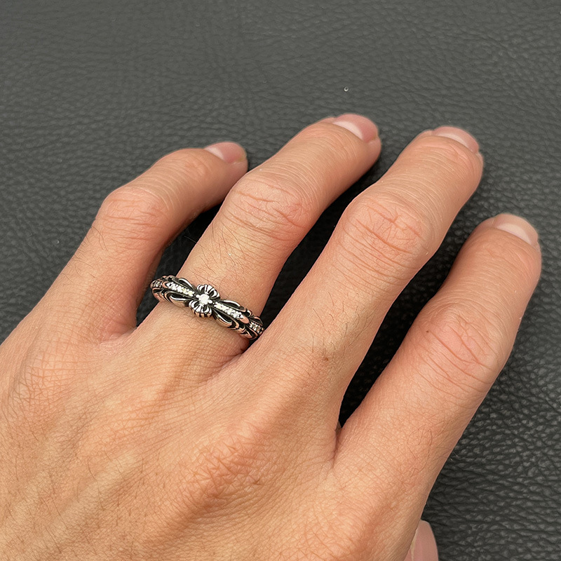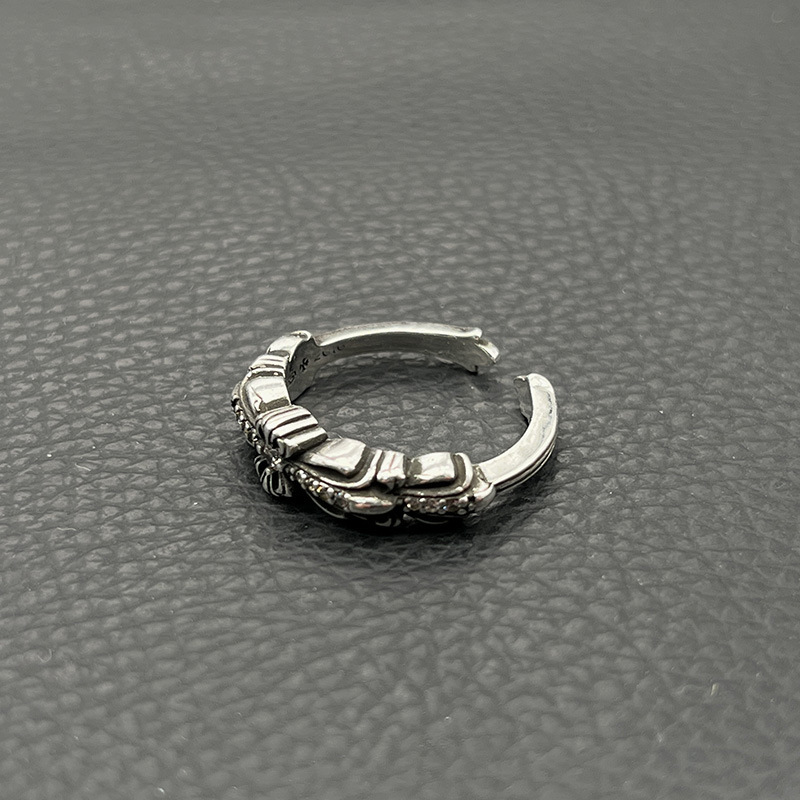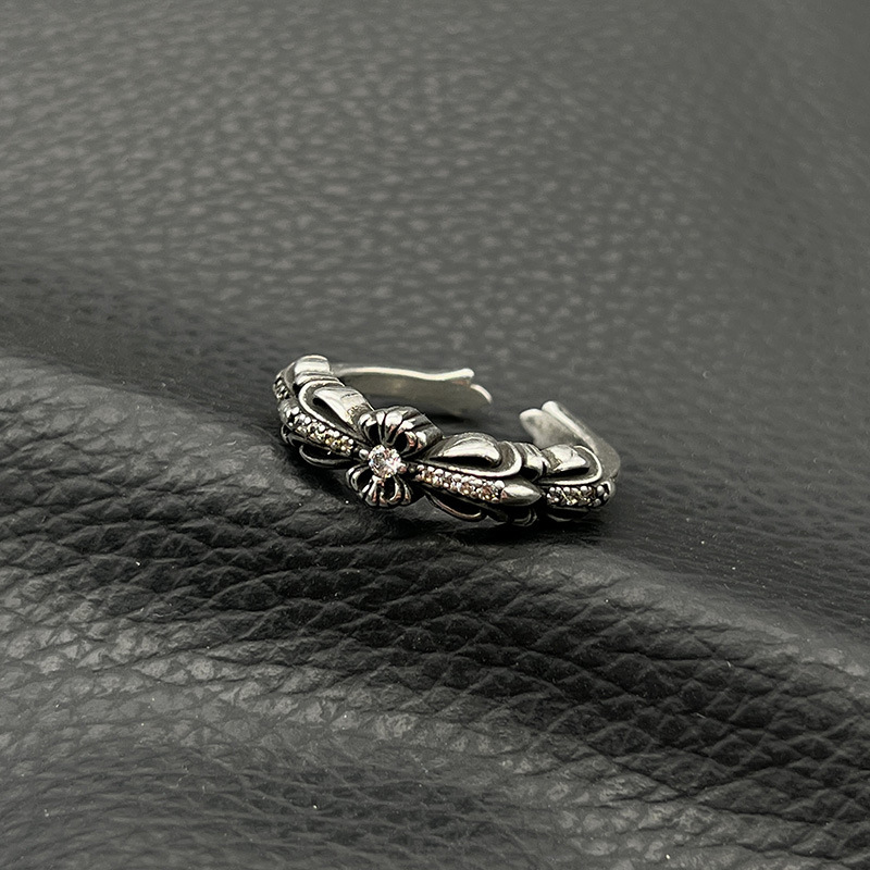 s925纯银克罗伈复古镶钻开口小十字花戒指男女指环经典款潮牌对戒