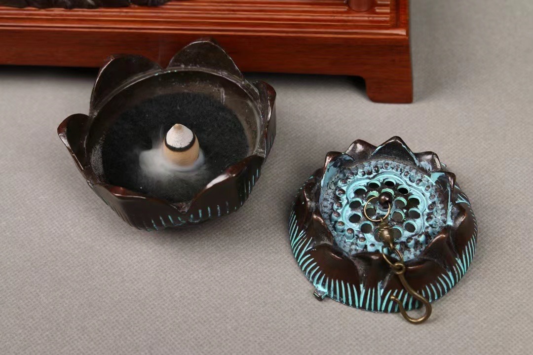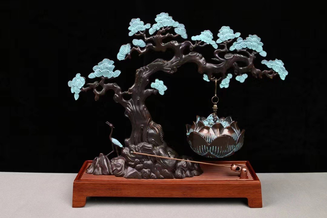新中式迎客松倒流香香炉创意摆件吊炉沉香檀香炉熏香线香插香薰炉
