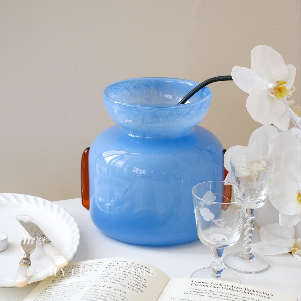 中古花手工焦糖拼*接黄色手玻璃花瓶轻奢感水培奶鲜客厅摆件工花