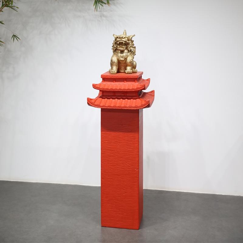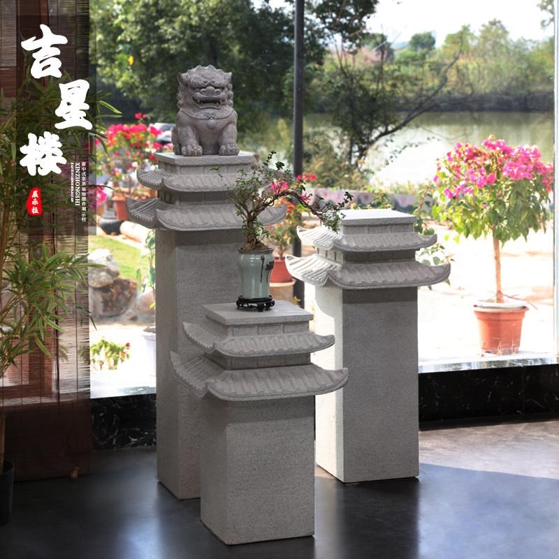 办公室落地新中式仿石头底座石柱墩花架玄关入户门客厅.装饰品摆