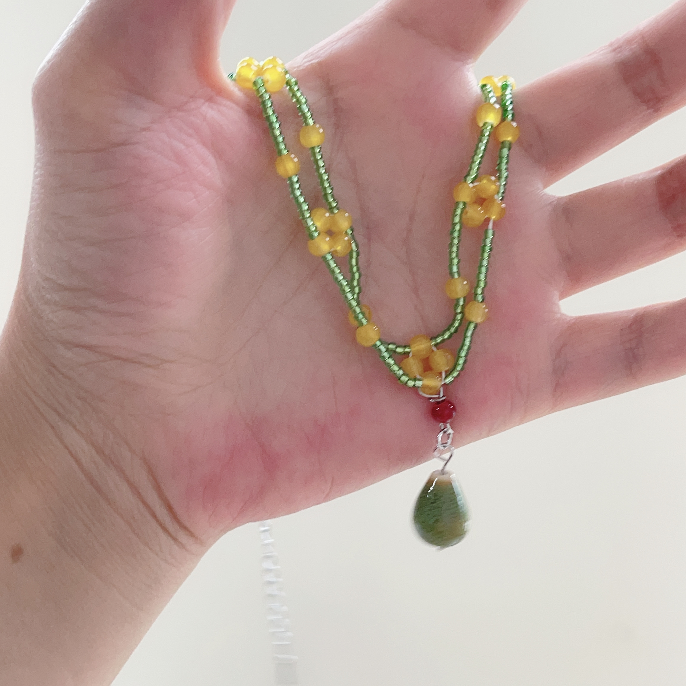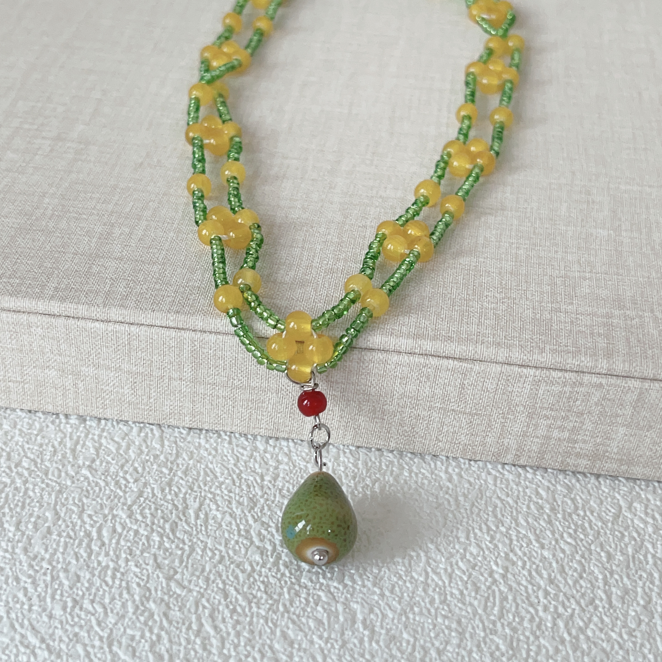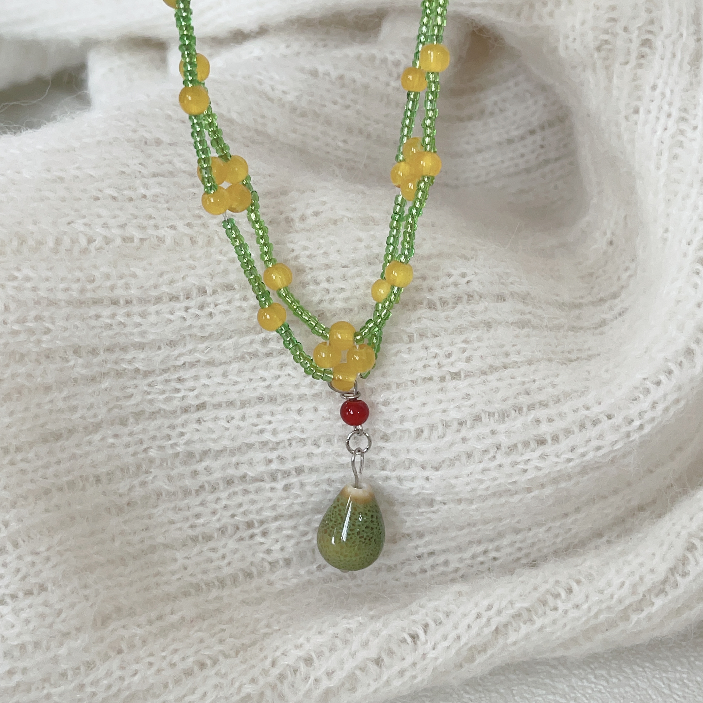 设计感复古黄绿色串珠项链女新中式显白气质百搭颈链锁骨链配饰