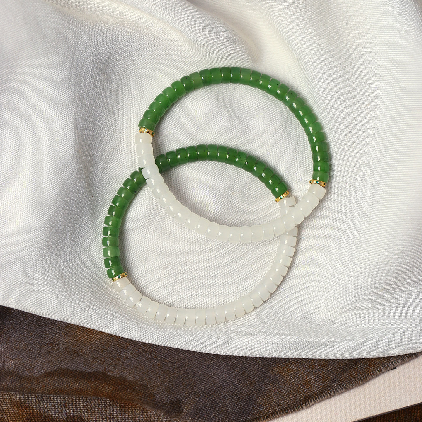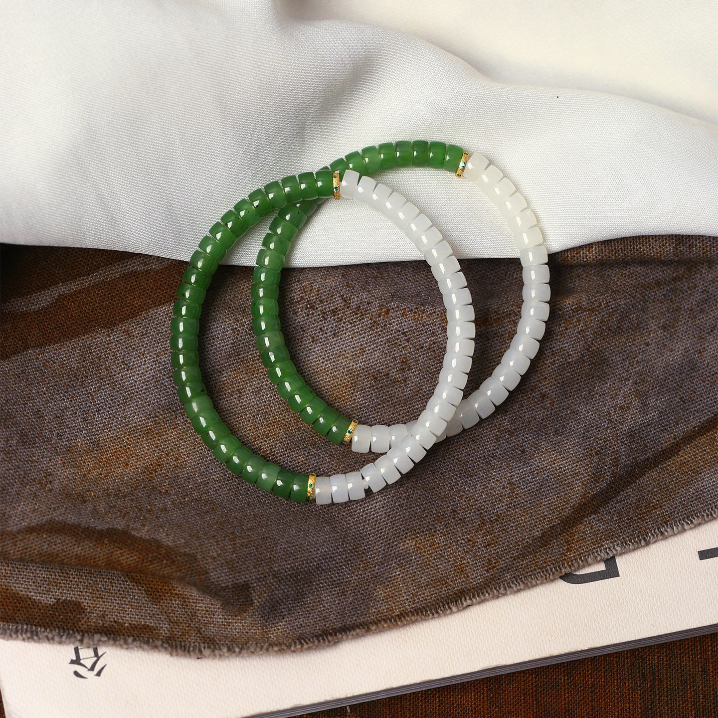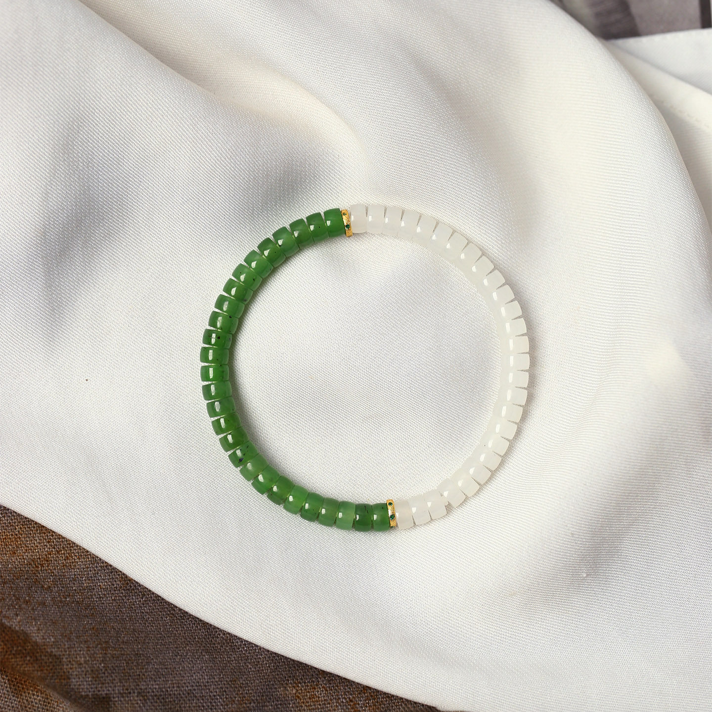 精品天然和田玉冰料白玉搭配碧玉直切盘珠原创搭配款手链 男女款