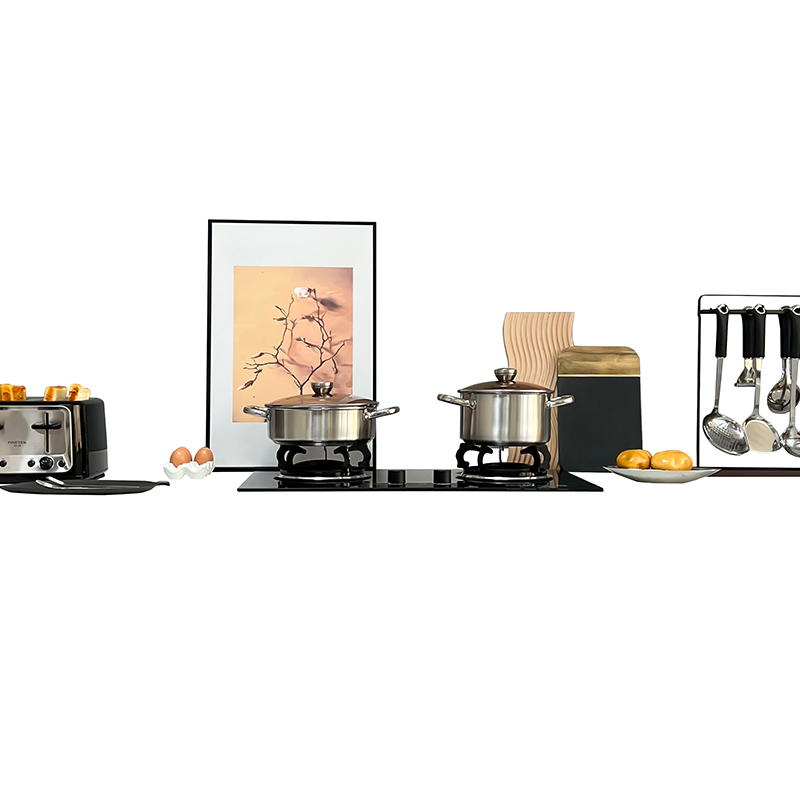 样板间厨房摆件饰品家居软装不锈钢汤锅烤吐司机面包机锅铲置物架