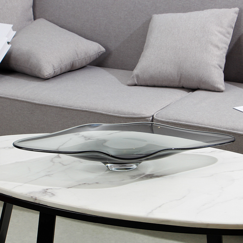家居现代酒店前台摆件灰色玻璃水果盘样板房O装饰售楼处摆场摆设