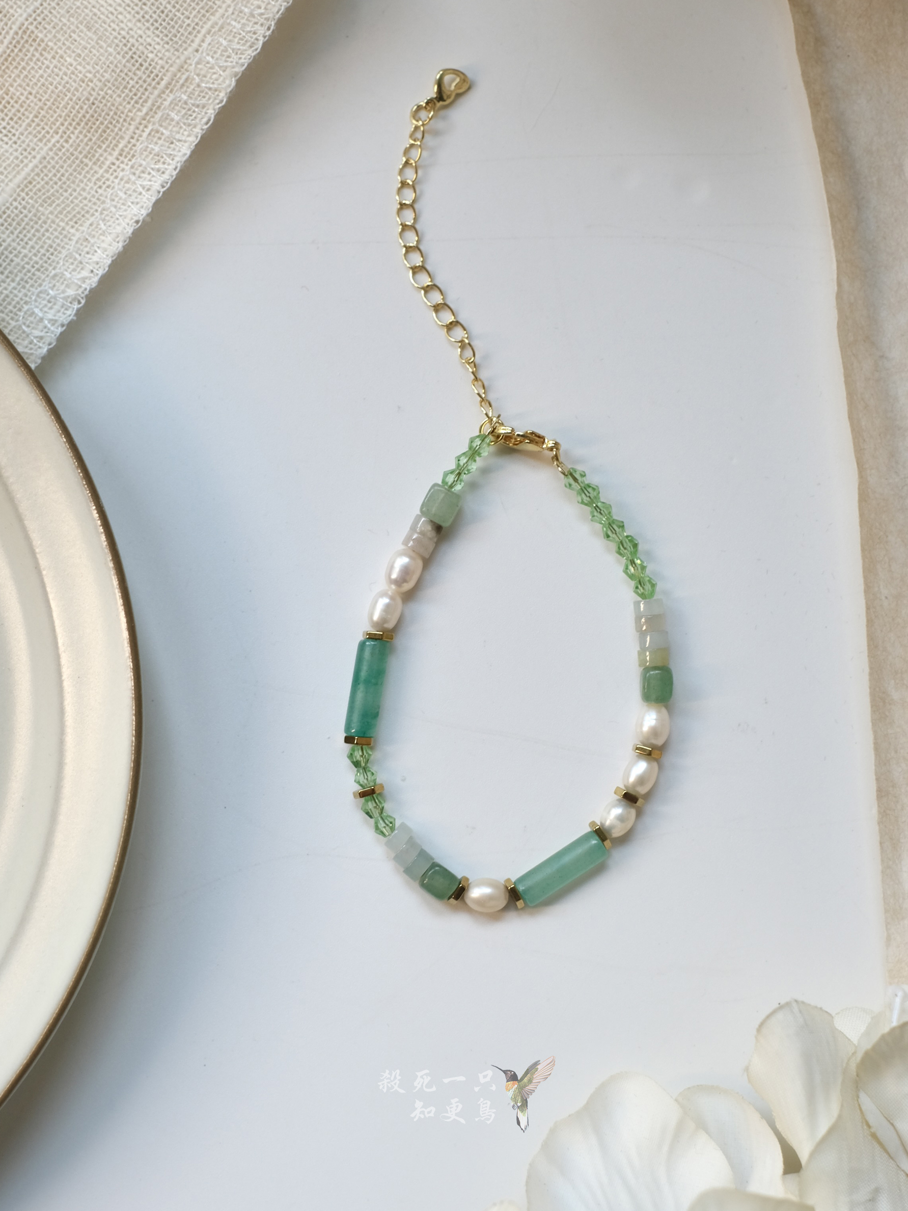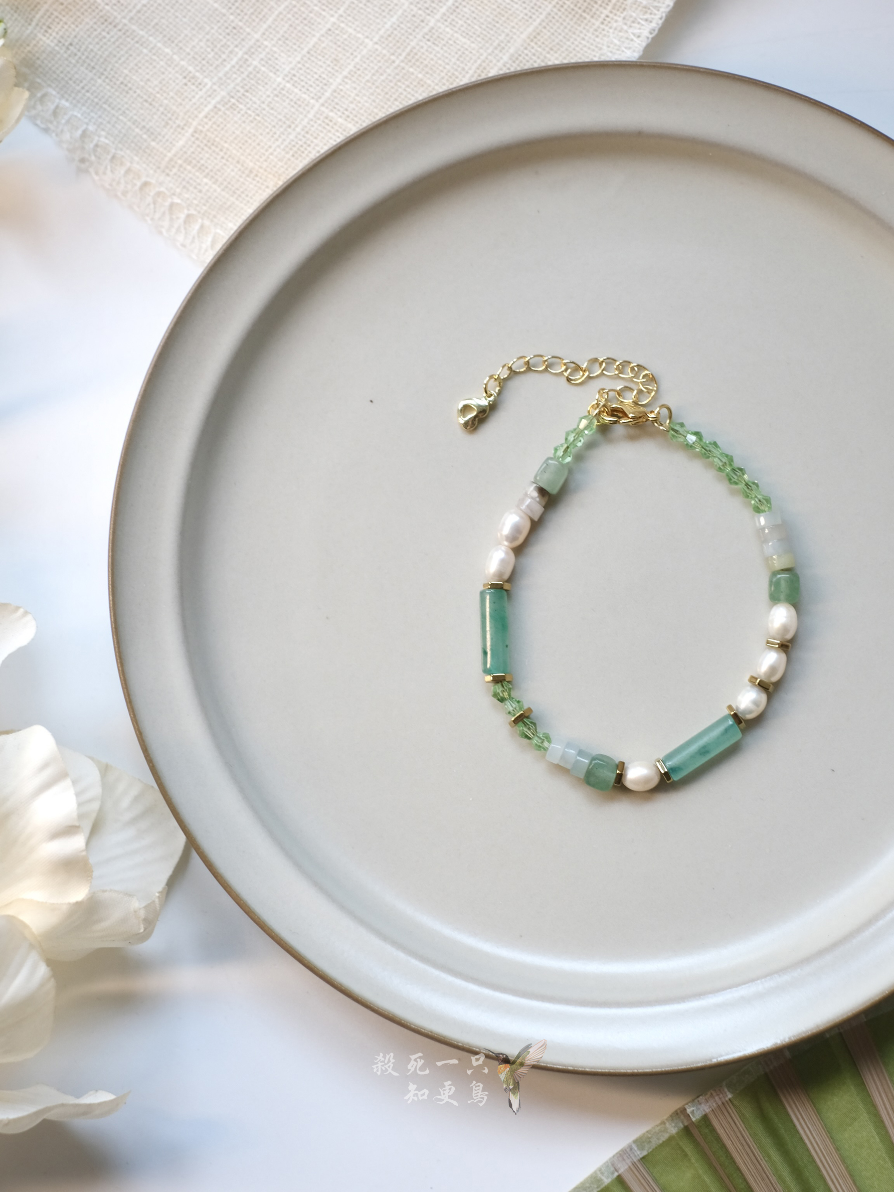 知更鸟|青玉案 原创新中式清新绿色古典天然石淡水珍珠手链手串