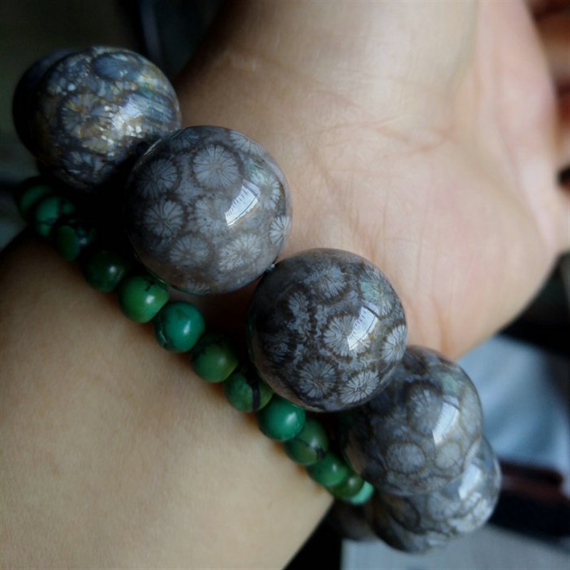 已出 欣赏 浅墨蓝白花天然印尼珊瑚玉手链手串男女款大精品珠