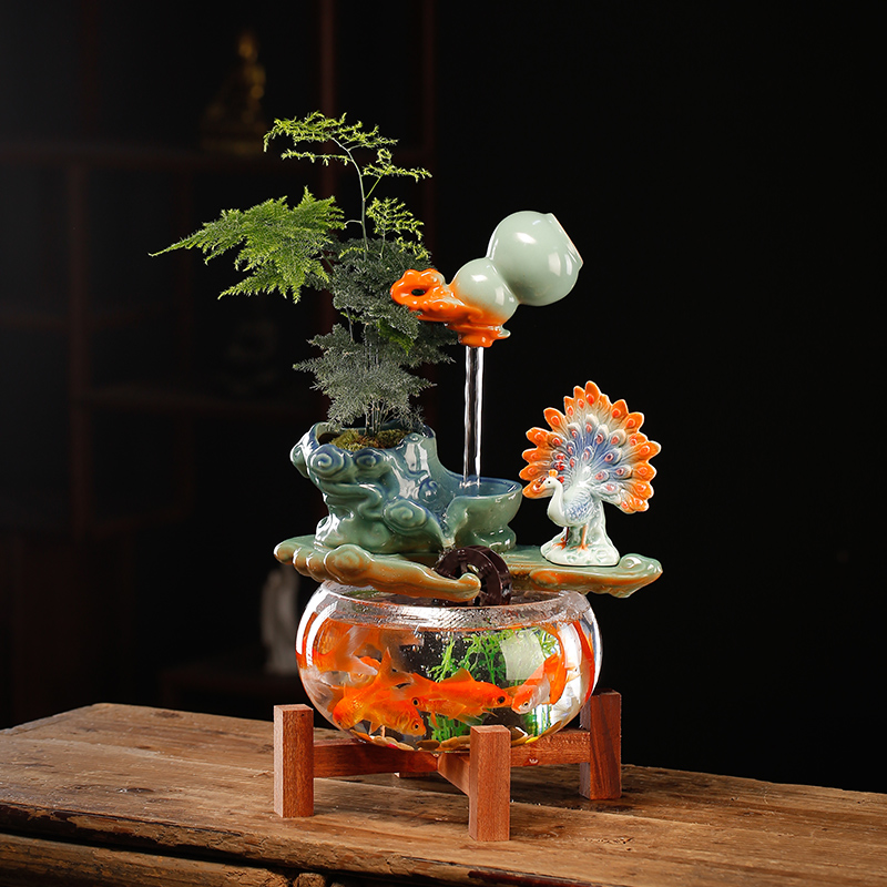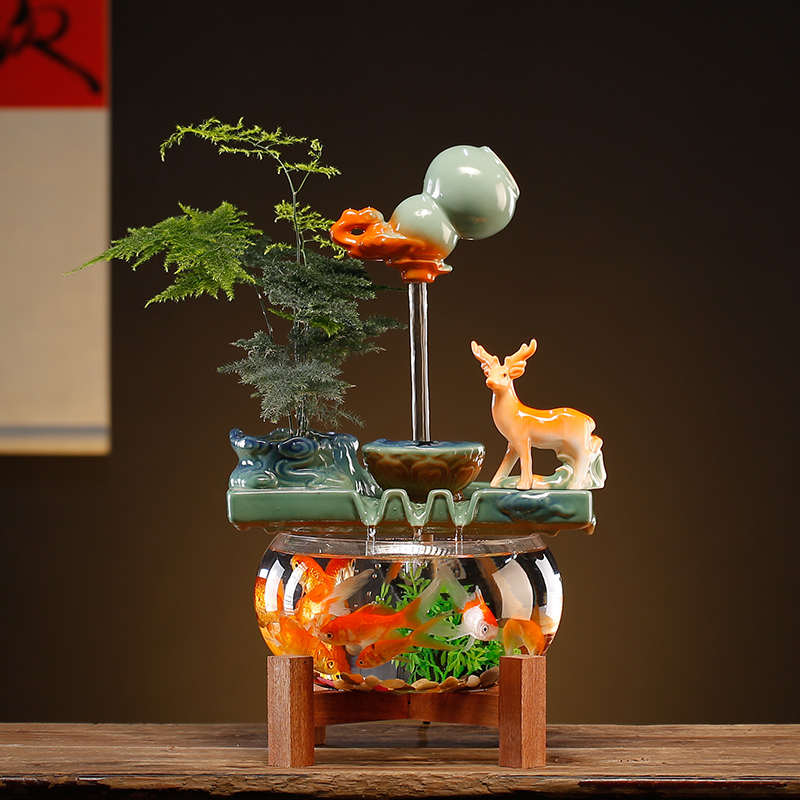 简约现代招财流水小型鱼缸摆件循环水造景家居客厅办公室桌面装饰