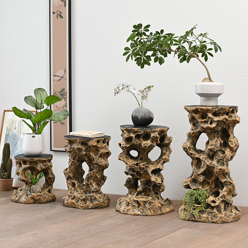 花园装饰太湖石树脂底座仿石墩户外庭院盆景别墅露台花盆花架摆件