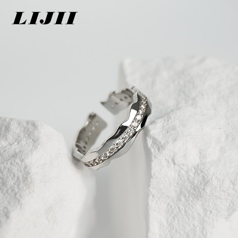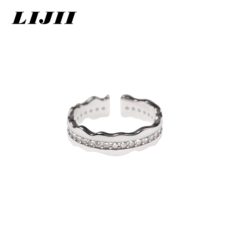 【链界LIJII】925纯银溪流弯曲镶嵌锆石简约高级精致小众男女戒指