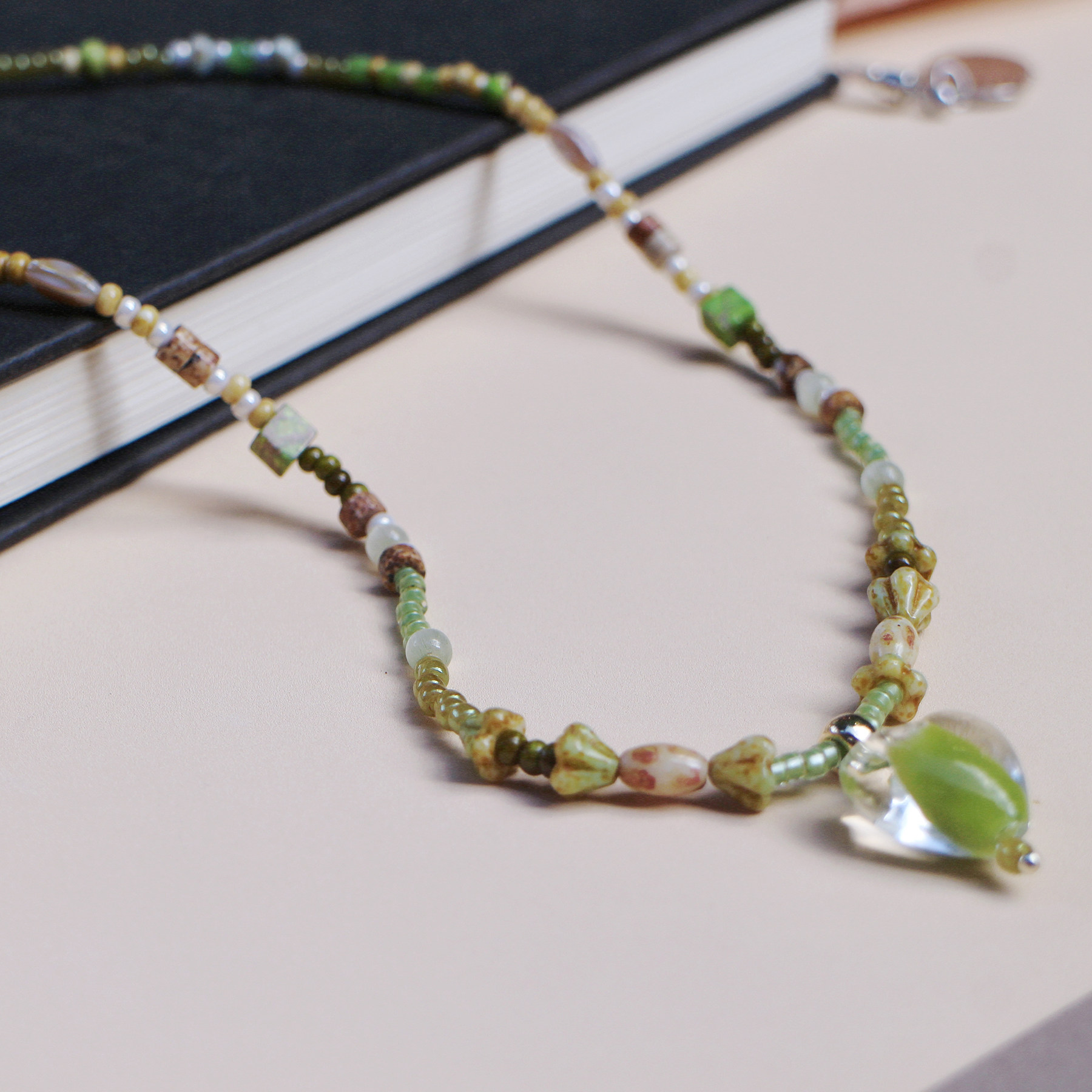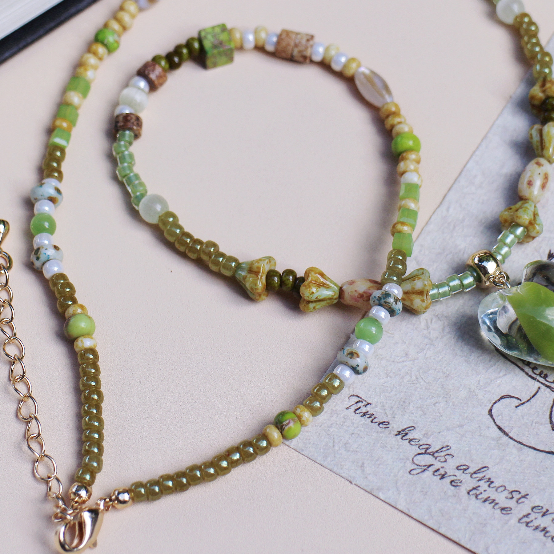 myzoo原创设计绿色系琉璃爱心吊坠项链串珠小众个性轻奢配饰定制