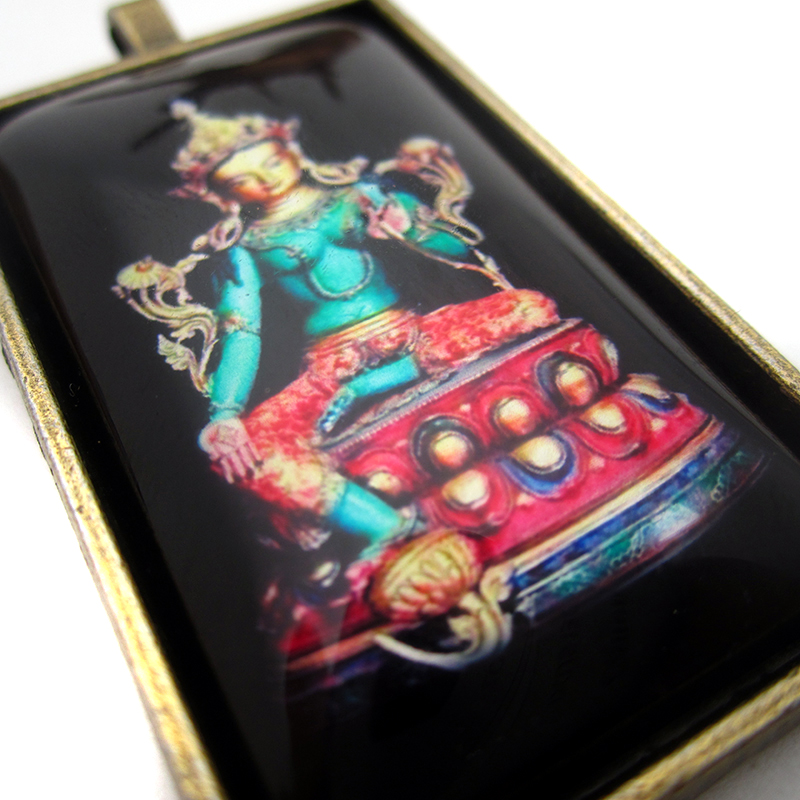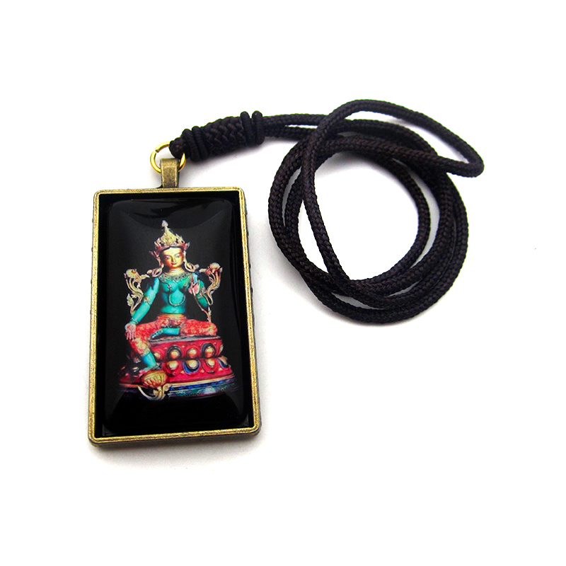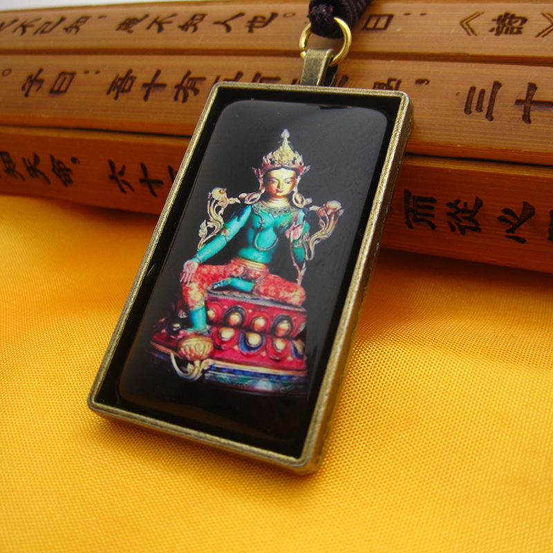 YC4834新款大号长方形绿度母佛像古青铜佛牌挂坠法会结缘吊坠定制
