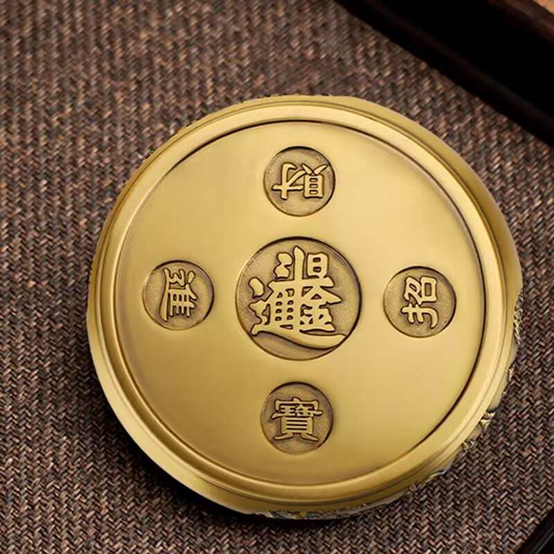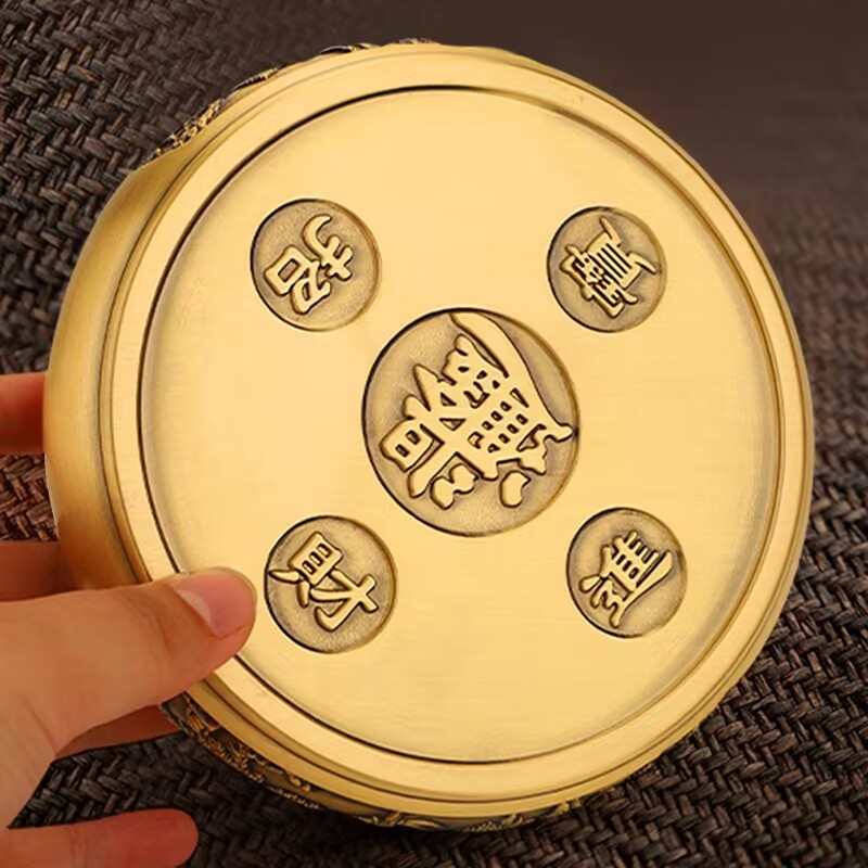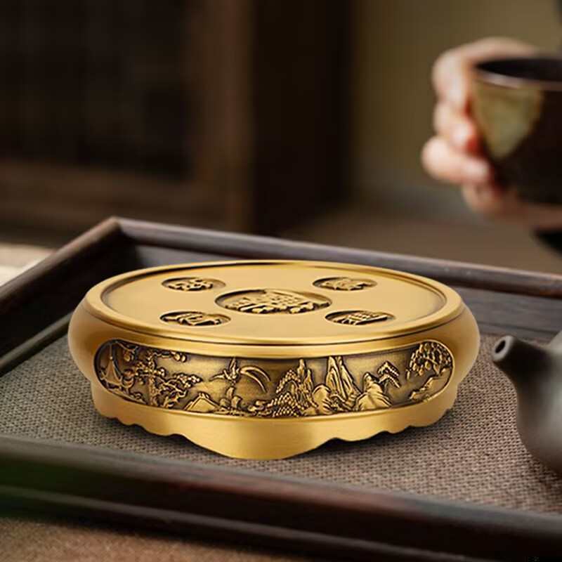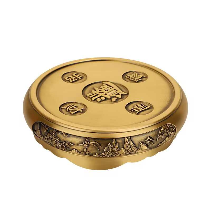 黄铜铜缸山水底座摆件招财进宝款摆放聚宝盆香炉金属座架复古怀旧