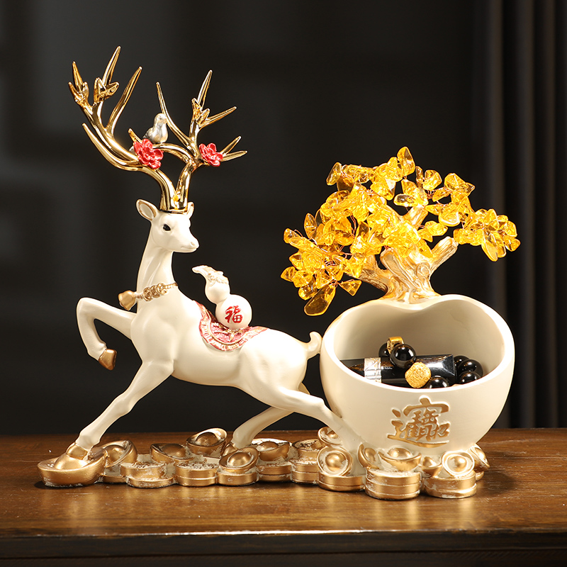 麋鹿摆件中式门厅鞋柜玄关电视柜放钥匙收纳客厅装饰招财创意摆放