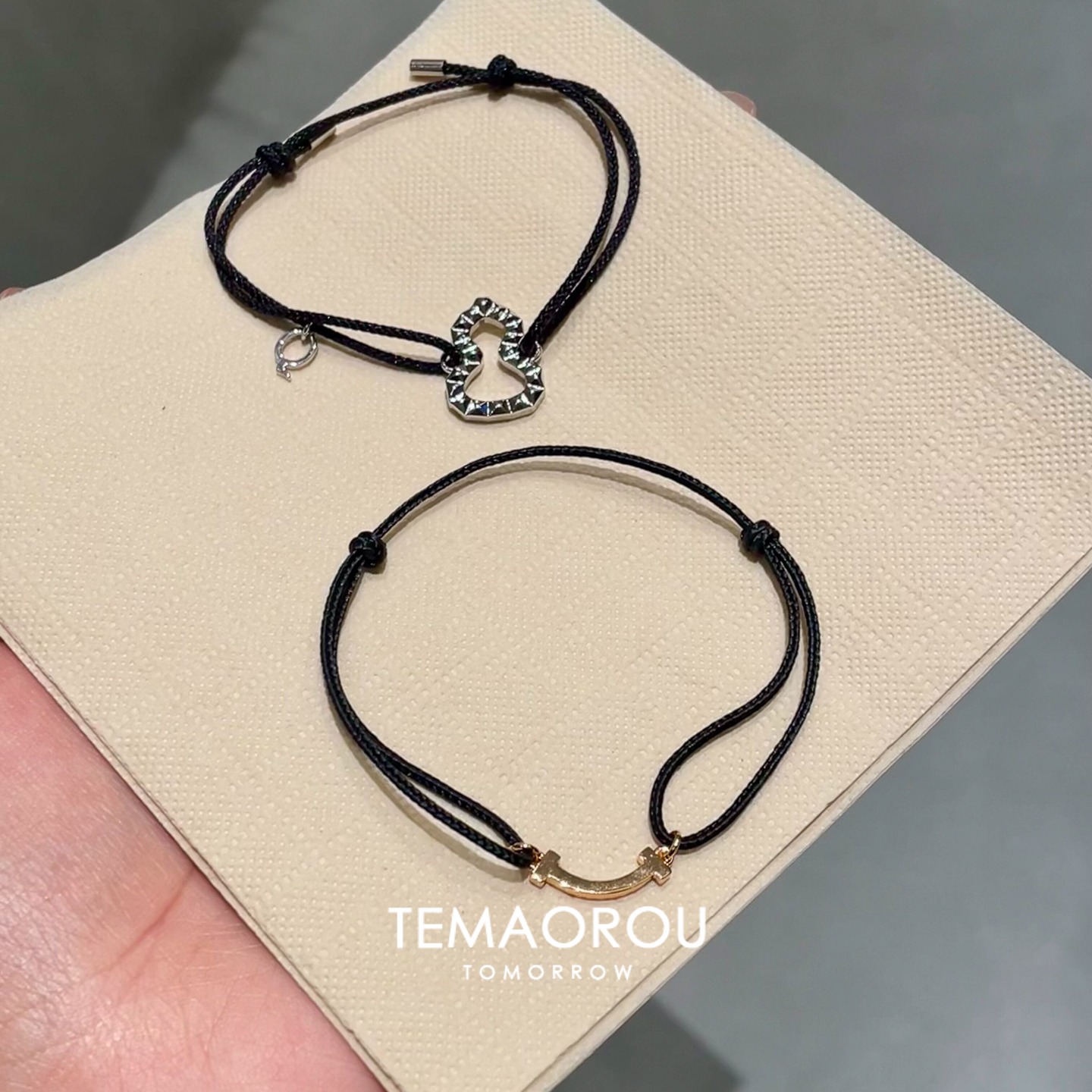 S925纯银葫芦黑色编绳手绳轻奢高级感小众时尚手链简约百搭手环女