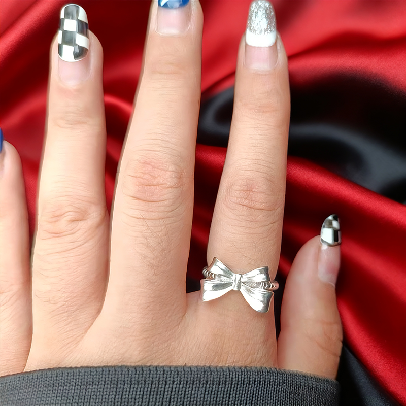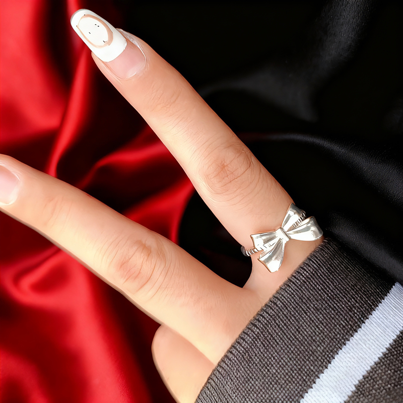 在逃公主蝴蝶结999纯银戒女防过敏足银轻奢活口指环送女友礼物