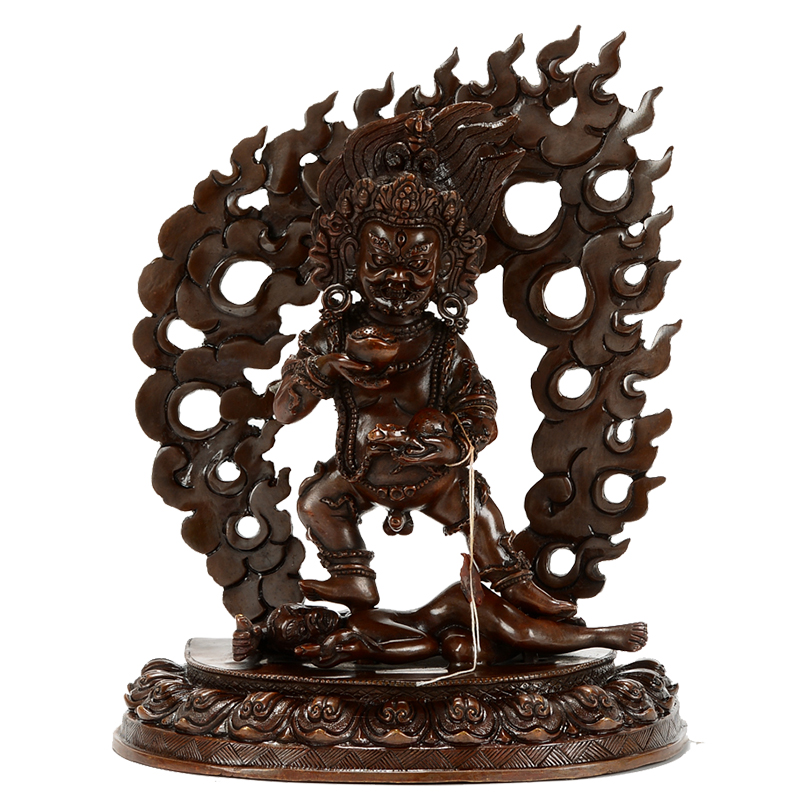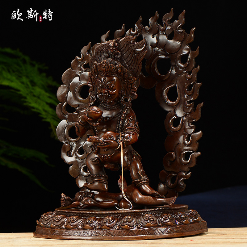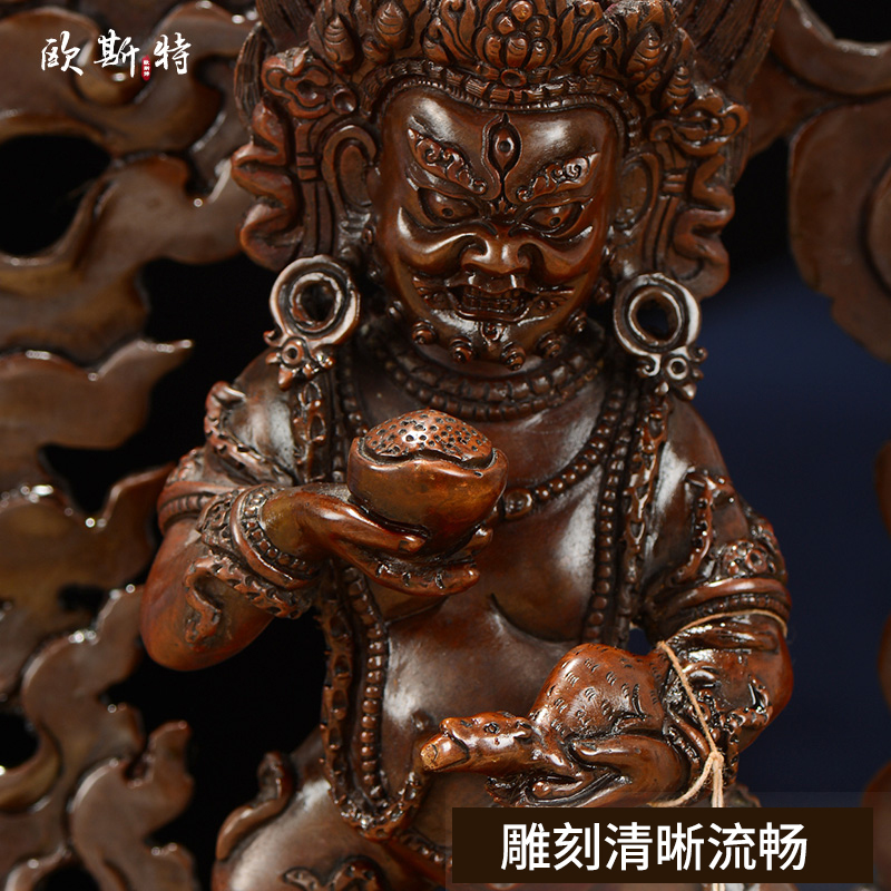 欧斯特 黑财神铜像 尼泊尔手工雕花10寸紫铜居家玄关五路财神摆件