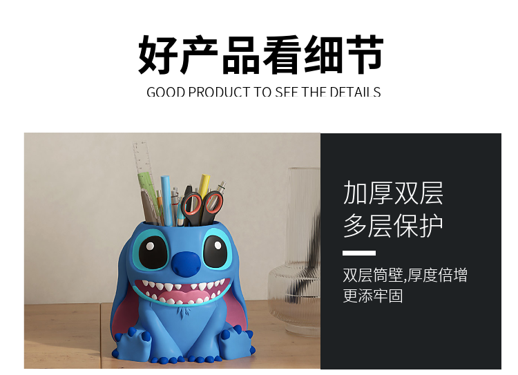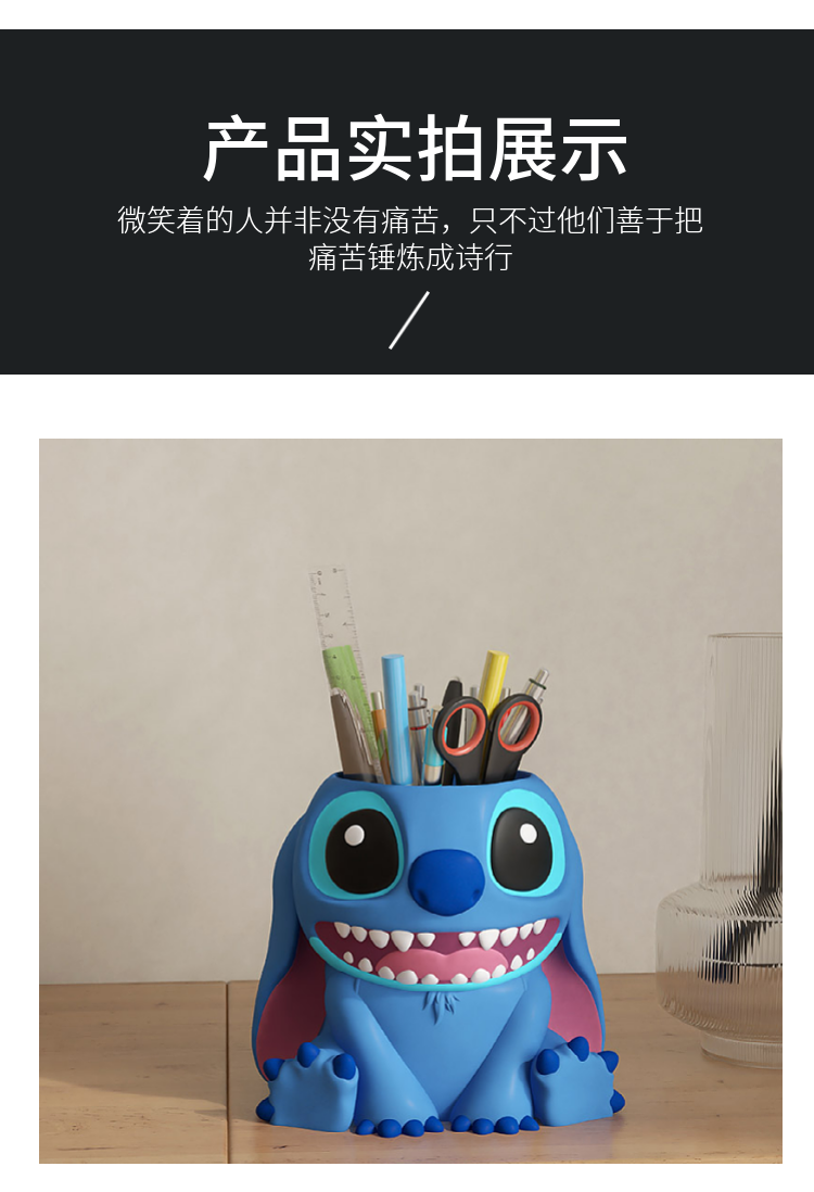 创意史迪仔笔筒遥控器收纳盒桌面大容量超大客厅装饰搬家礼物摆件