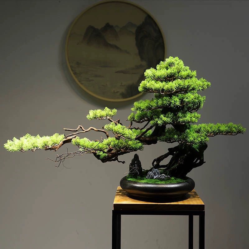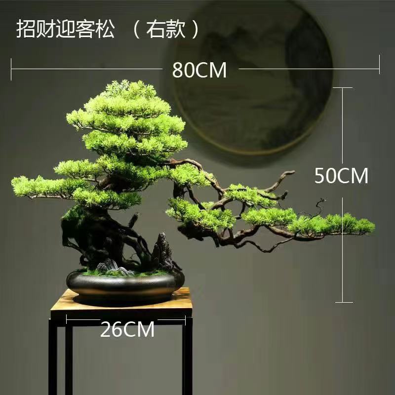 仿真迎客松绿植盆景入户玄关中式客厅办公室桌面假树乔迁装饰摆件