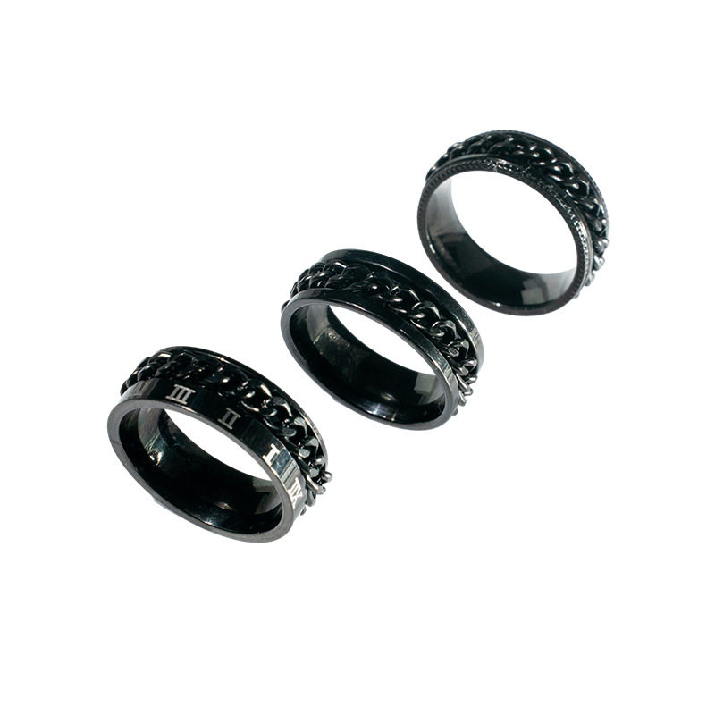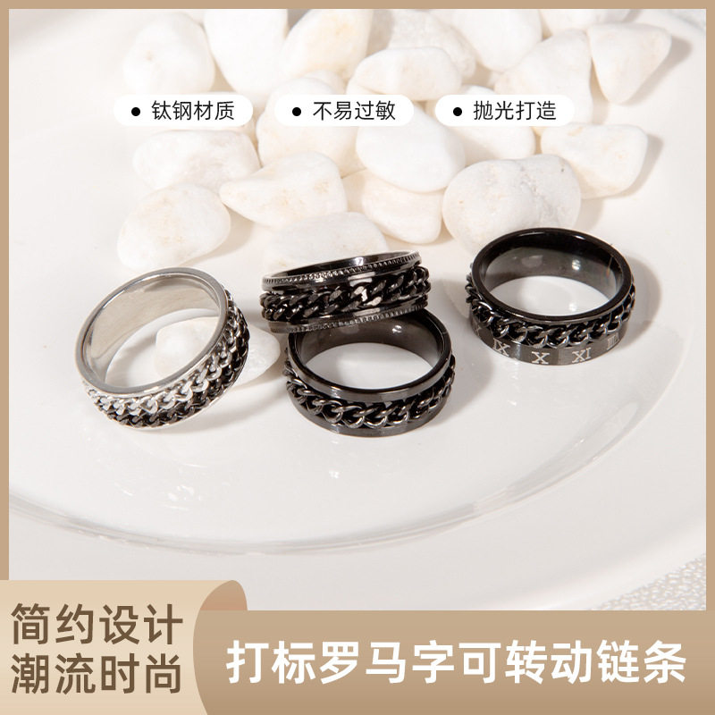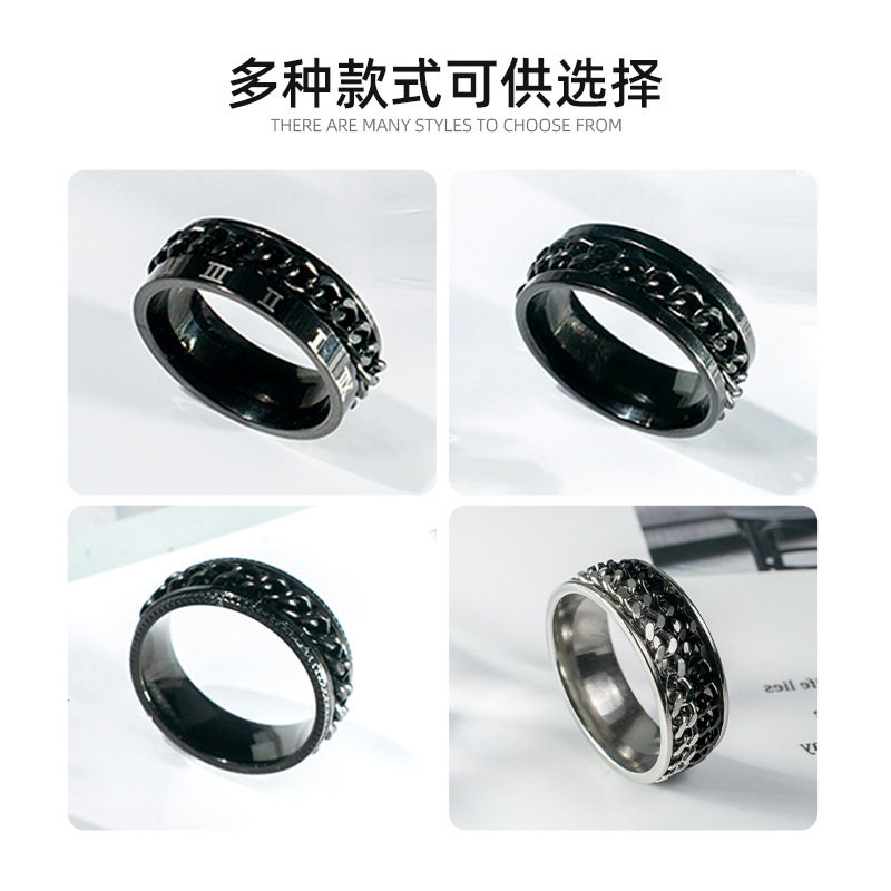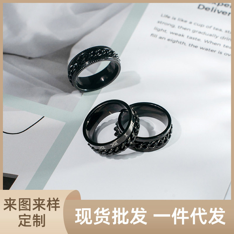 简约不锈钢男款潮男戒钛钢可转动开啤酒瓶链条戒指个性黑色